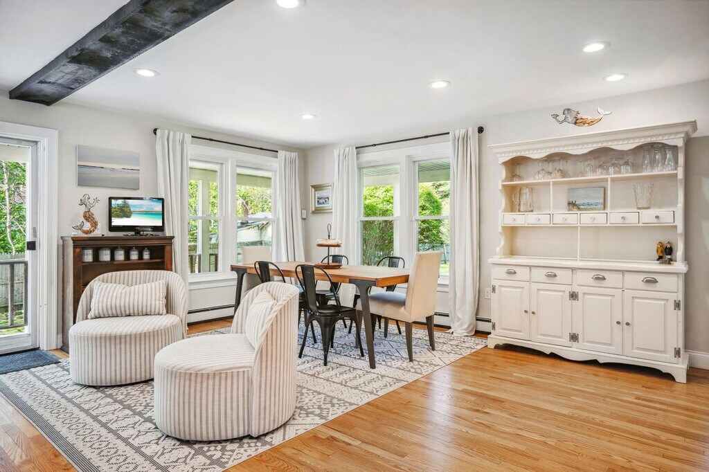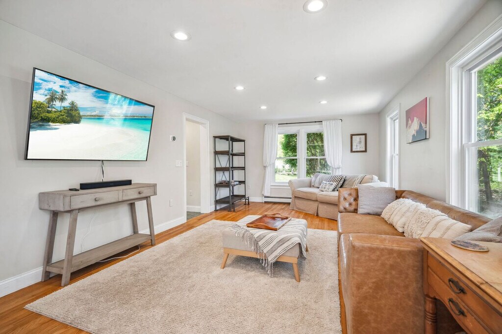 Welcome to "Long John Landing," feel at home in this 4-bedroom home in the heart of scenic Rye, New Hampshire. This 2800 square foot home accommodates 9 people and is located just minutes from the beach and downtown Portsmouth, NH. This home features an updated, fully equipped kitchen with all major appliances, a dishwasher, a large island with seating for 4, a high chair, and a pantry. The dining area includes swivel chairs and seating at the dining table for 6, along with a Smart TV. The family room offers plenty of seating with 2 couches and 2 chairs, a large Smart TV with a Sonos speaker, and mini-split heating and cooling. Additional amenities include a mudroom with built-ins, a half bathroom, a farmers porch with a gas grill and outdoor seating, an in-unit washer and dryer, central heat, air conditioning via mini-split or window A/C, and an automatic backup generator. A $100 fee per pet applies and will be charged through our software after the booking is confirmed. Located on the Atlantic Coast, the Town of Rye, New Hampshire is a one-hour drive by car from Boston, Massachusetts; Portland, Maine; or the foothills of New Hampshire's White Mountains. Rye is known for its beautiful unique beaches, tasty seafood, and coastal fun, ideally situated between Hampton to the south and Portsmouth to the north. This home is a 4-minute drive to the beach and a 10-minute drive to downtown Portsmouth, so a car is needed to get around. Quiet hours are between 9:00 p.m. and 9:00 a.m. Guests must be 25 years old to book. A maximum of 2 dogs are allowed, and guests are responsible for cleaning up after them. Additional payment will be requested for any extra clean-up required due to pets. No house parties are allowed. Do not flush anything other than toilet paper down the toilet. Smoking, vaping, or illegal drugs are prohibited in or on the property. If you damage furniture or any items in the property, you will be responsible for the cost of the damage or replacement. Includes a work-from-home desk in bedroom #3. Registration Number: 105910 [SI]
