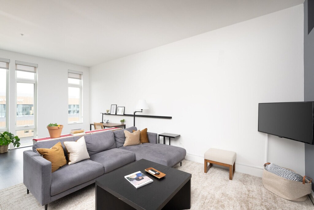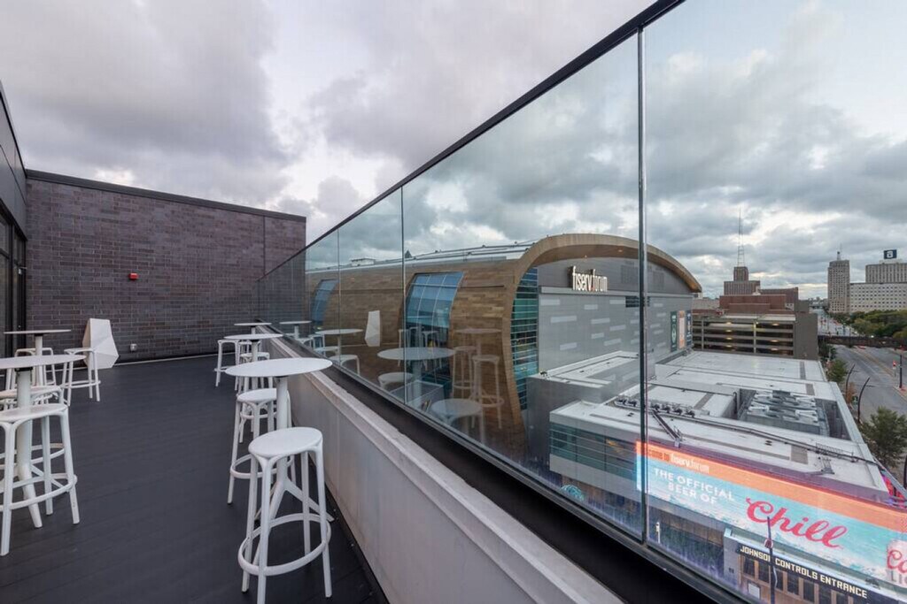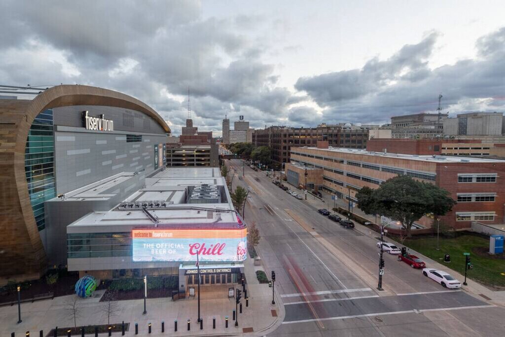 Feel at home in this apartment featuring direct access to the Fiserv Forum through an attached skywalk. This apartment comfortably sleeps two with a queen bed and has flexible seating areas so you can work or relax at your convenience. The sofa may serve as additional sleeping space, however please note it does not have a pull-out bed. Amenities include self check-in, high-speed Wi-Fi, a smart TV with Chromecast, and a Keurig. This apartment includes one free parking space in a secured parking garage (the 5th Street Parking Structure) which has direct and enclosed access to the building. Additional parking is available in the same garage and costs $20/day (and increases during events). The garage has a vertical clearance of 8'2" which is enough for most consumer vehicles but may not accommodate larger vehicles such as RVs or full-size vans. Metered street parking is also available directly outside the building on Juneau. Connected to the Fiserv Forum through an enclosed skywalk, this apartment is a 5-minute drive to Downtown, Third Ward, and Marquette University and is walkable to the Deer District, Water St. bars, and Pabst Brewery District. The bedroom has a sliding barn door for privacy, however please note that the top of the dividing wall between the bedroom and living room is partially exposed. There is some potential for traffic or other street noise due to the centrally located nature of the property. Disposable ear plugs are provided for guests just in case. No smoking of any kind is allowed anywhere on the premises including outdoor spaces ($150 fine will be assessed and additional fees for remediation may apply). Quiet time is after 10pm. Guests must cover the cost to replace unreturned access devices such as keys, key cards, fobs, or parking passes. Guests take full responsibility for loss, injury, or damages that occur on the premises and its facilities. Bookings by local guests are prohibited at this property. Guests who violate these rules are liable for any associated damages, fees, or expenses and may be removed from the property without refund. Includes a laptop-friendly workspace. [SI]