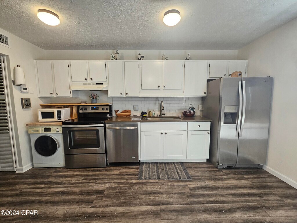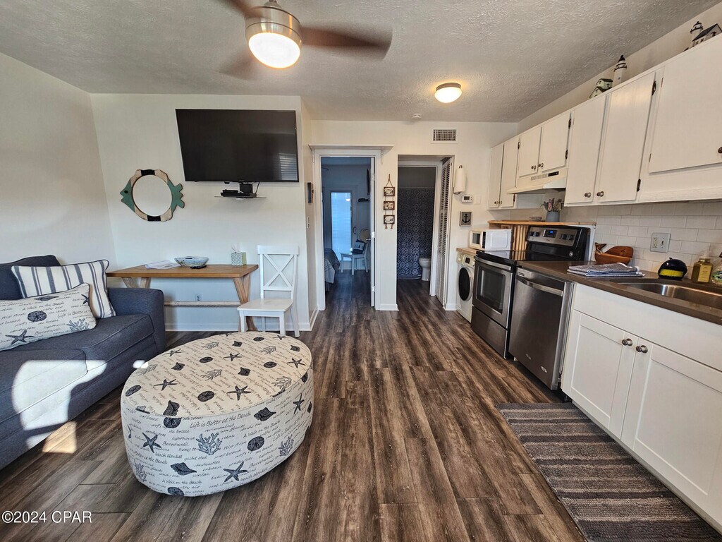 Remodeled, furnished condo on PCB just a short walk to the beach! Community pool and courtyard, washer/dryer combo. Includes water, sewer, trash, basic cable & pool/yard maintenance.