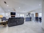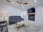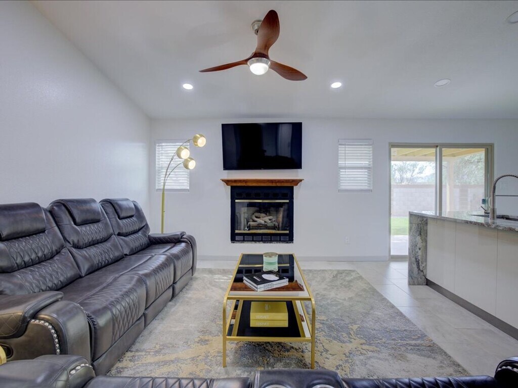 Welcome to this stunning 3 Bedroom 2 Bathroom home located in the vibrant city of Tucson, AZ. This home boasts a spacious layout with tile throughout, enhancing the modern aesthetic. The open concept kitchen and dining room, complete with a kitchen island and nook, are perfect for entertaining. The kitchen is equipped with stainless steel appliances, adding a sleek touch to the space. Each bedroom is fitted with a fan for your comfort. The master bedroom features a double sink vanity for added convenience. The home comes partially furnished, ready for you to add your personal touch. The property also includes a washer/dryer, a two-car garage with an extended driveway for additional parking, and a large enclosed backyard with a turf area for outdoor enjoyment. Relax on the covered porch or cozy up by the fireplace on cooler nights. This home is a perfect blend of comfort and style. Don't miss out on this fantastic opportunity to make this house your new home! No cats, dogs only, with owner approval(2 pet max)! Interested in this property, Call or Text Chris at Apply on Qualifications Required: 1. No Evictions 2. Credit Score 600 or above 3. Applicant must make 3X the rent 4. Account setup fee $400.00 5. 2 years of residential history (does not apply to students) 6. Valid form of identification 7. Pet Fee $500.00 per each pet, NON-REFUNDABLE - IF ALLOWED! 8. Residents 18 or older must submit an application 9. Application fees $65, no refunds, NO EXCEPTIONS! 10. Monthly Admin Fee $25.00