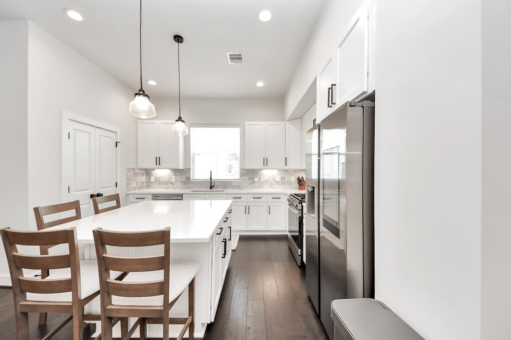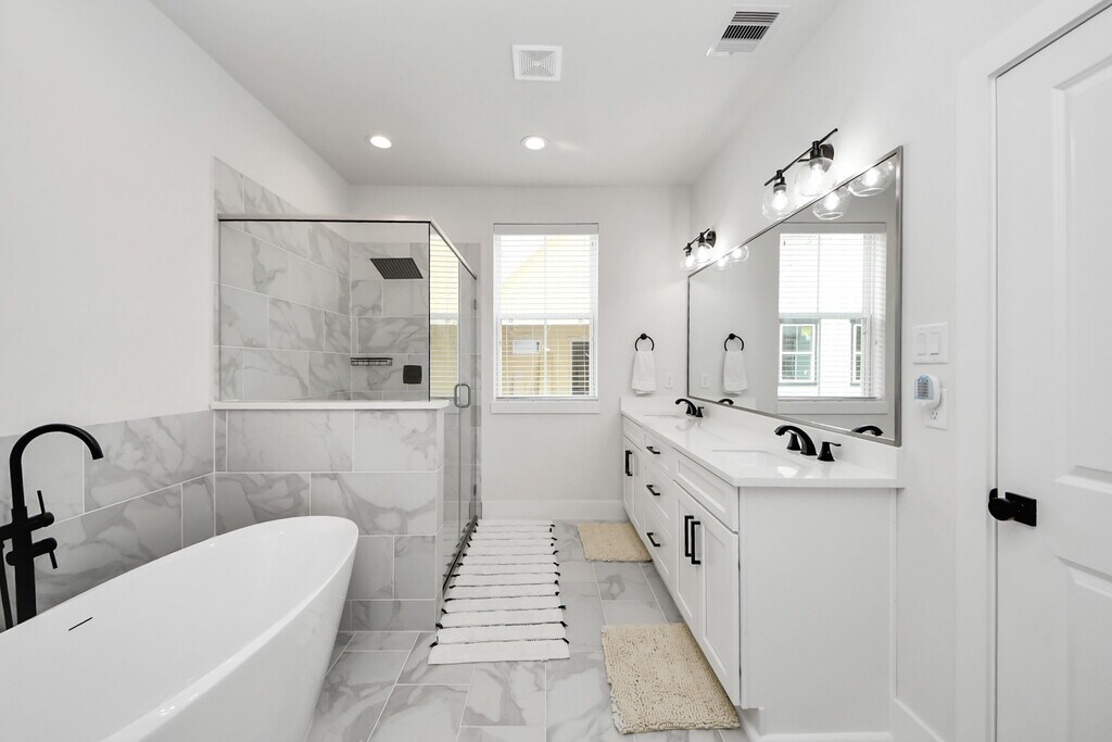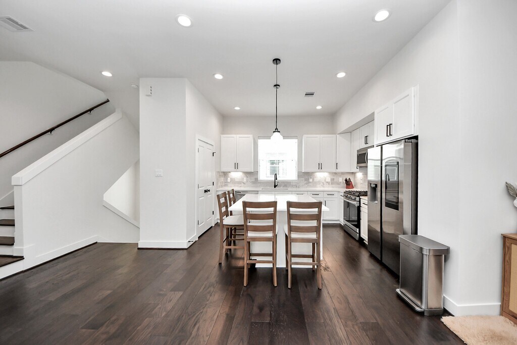 Better than New! A beautifully designed 3-bedroom,3.5-bathroom modern home in the gated community! This home offers an open-concept layout with contemporary elegance. The gourmet kitchen features stainless steel appliances,custom cabinetry,a stylish center island,and a breakfast nook,ideal for entertaining,complemented by a convenient half-bathroom. The primary suite is a serene escape with a luxurious en-suite bathroom,including a freestanding tub,dual sinks,shower,and spacious walk-in closet—all carpet-free. Two additional bedrooms,each with private bathrooms! Enjoy a private balcony,backyard retreat,and secure community living. Just 15 minutes from Downtown Houston,with easy access to I-610,this home is steps from Garden Oaks /Oak Forest. MOVE IN READY! whole house beautiful modern Furniture are available for purchase! still has builder warranty! INCLUDING SMART FRIDGE,Washer and dryer! $3000/month if you want to rent including furniture. MLS# 37089822