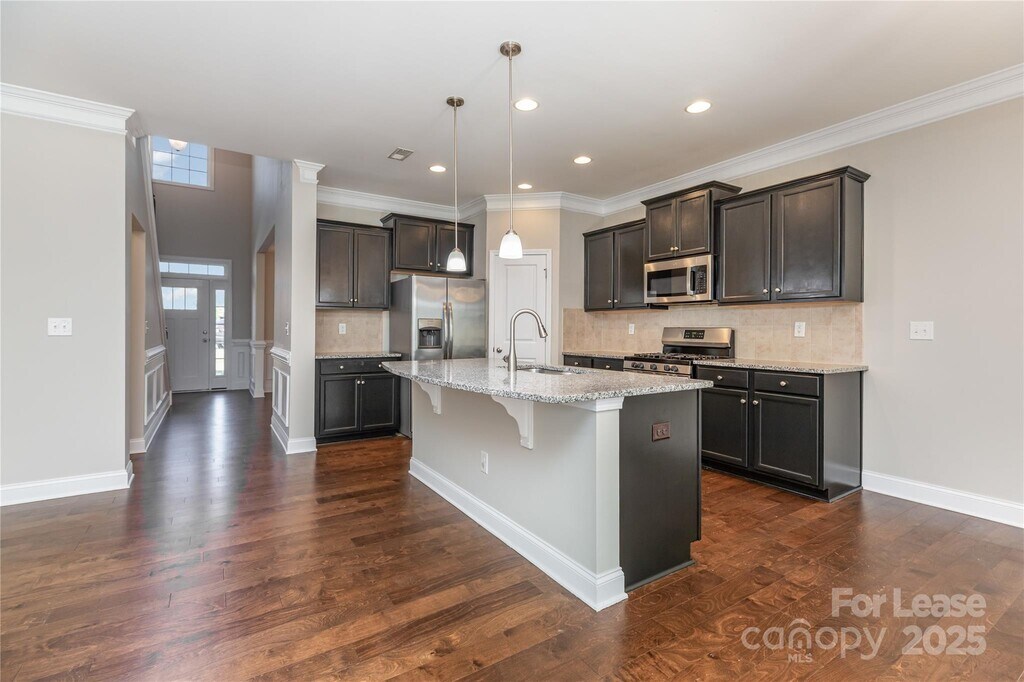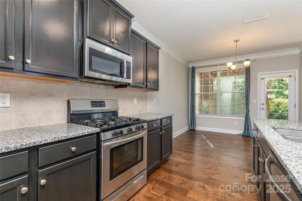This Beautifully Maintained 2-story Single-Family home in the Stafford Community is Available from October 13th! It offers 2,553 sq. ft. of thoughtfully designed living space with 5 spacious bedrooms and 3 full bathrooms. The home features a welcoming front porch,a flat backyard with a patio partially covered by a charming wooden pergola and a front-entry 2-car garage. On the main level,you'll find a guest bedroom with a full bath,a bright living room with a cozy fireplace,a stylish kitchen with a breakfast nook that flows towards backyard,and a formal dining room. Upstairs,the luxurious primary suite includes a walk-in closet and private bath,complemented by three additional bedrooms,another full bath,a bonus room and a laundry room. The kitchen boasts granite countertops,stainless steel appliances,a gas range,tile backsplash,and pantry storage. Community amenities include a playground and an outdoor pool. Conveniently located near I-485,the University area,and Concord Mills,this home offers easy access to shopping,dining,and entertainment. Lawn maintenance,Internet,Water,Gas and electricity are the tenant's responsibility. HOA fees are covered by the owner,and refrigerator,washer,and dryer are included at no extra cost A maximum of two pets is allowed. The pet rent is $25 per month per pet. All tenants 18 and older are required to complete a credit check,background check,provide proof of funds,and pay a non-refundable application fee. A minimum 1-year lease is required no short-term rentals or subleasing permitted. If the credit score is above 650,a security deposit equal to one month's rent will be required; if the score falls between 600-650,a deposit of up to two months' rent may be required.