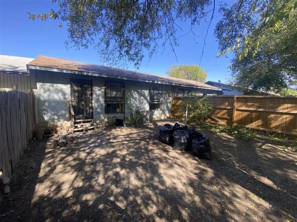 Welcome to this stunning 2 bedroom 1 bath townhouse with covered parking. This recently renovated home boasts an open concept design, perfect for modern living. The house features two spacious bedrooms and a full bathroom, offering ample space for your needs. The fully equipped kitchen and living areas are adorned with beautiful ceramic wood look tile flooring, adding a touch of elegance to the home. The property also includes washer and dryer connections for your convenience. Step outside to a fenced in backyard, providing a private outdoor space for relaxation or entertaining. With covered parking included, you'll never have to worry about the Texas heat or unexpected weather. This townhouse combines style, comfort, and practicality, making it a perfect place to call home. PLEASE FORGIVE THE MESSY PHOTOS AS RENOVATIONS ARE IN PROCESS AND WILL BE COMPLETED VERY SOON