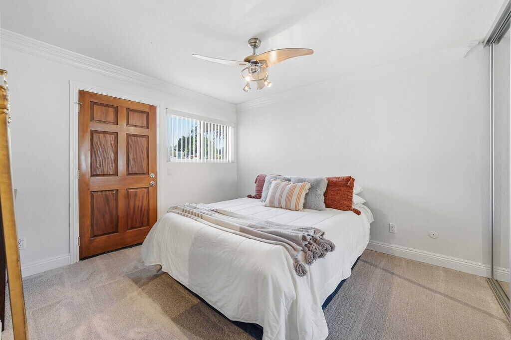Welcome home to this beautifully updated townhome in the heart of San Diego’s College Area! This charming 2-bedroom, 1.5-bath home offers a bright and inviting atmosphere just minutes from SDSU, local shops, and favorite dining spots. Step inside to discover new vinyl flooring, a spacious open layout, and a convenient half bath on the main level. The galley-style kitchen features granite countertops and flows into a cozy dining nook and living area—perfect for relaxing or entertaining. Upstairs, you’ll find two bedrooms with brand-new carpet and a full bath. One bedroom opens to a private balcony, ideal for morning coffee or unwinding after a long day. With in-unit laundry, two assigned parking spaces, and a community close to schools, parks, and easy freeway access, this move-in-ready home offers comfort, convenience, and classic San Diego living!