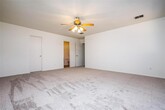 Cute single-story home featuring neutral interior paint and luxury vinyl flooring. This well-maintained property offers 3 spacious bedrooms, 2 full bathrooms, and an inviting open floor plan with a large living area and wood-burning fireplace. The eat-in kitchen includes a 10×5 walk-in pantry and adjacent laundry room, and opens to a generous backyard with a large covered patio. The primary suite features a 10×5 walk-in closet and private ensuite bath. Secondary bedrooms are nicely sized and provide good privacy. The backyard offers mature landscaping and a peaceful setting—ideal for outdoor dining, relaxing, or weekend BBQs.Located just steps from Minshew Elementary and Horizon Park, a 6-acre park with splash pad, swings, jungle gym, hike and bike trails, covered picnic areas, and open turf for play. Convenient access to schools, parks, shopping, and dining.
