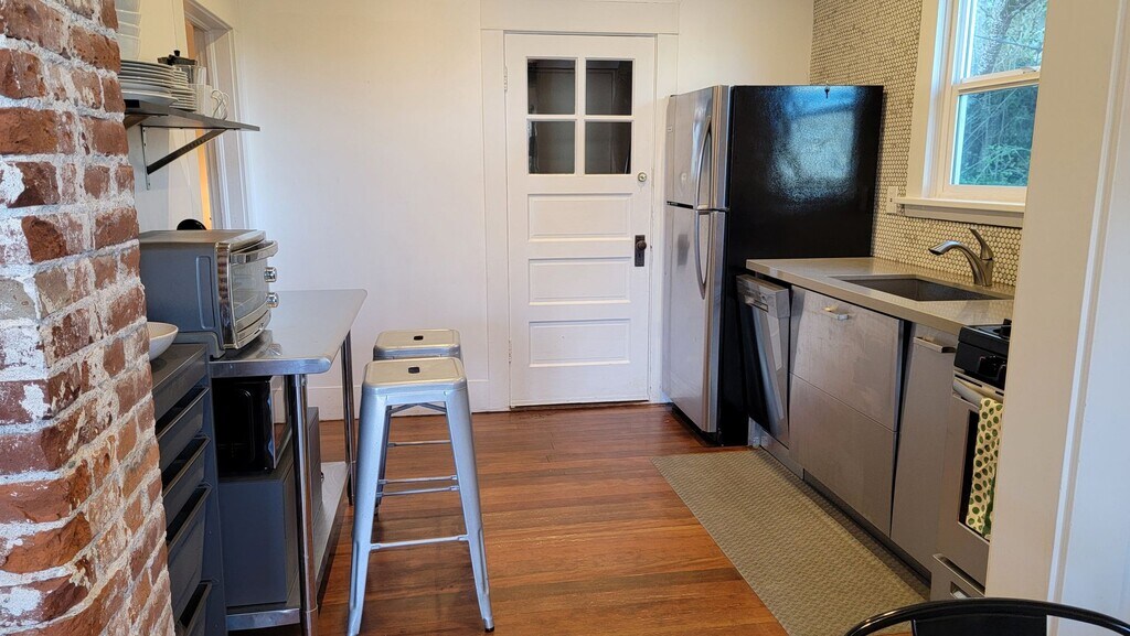 This swanky vacation rental is now available on a mid or m2m lease! Renovated with hints of industrial charm! Lovely 1 bedroom + 1 sleeping loft nestled in the woods - comes fully furnished and turn key ready! This unique house features brand new roof, plumbing, interior and exterior paint, deck, clawfoot tub, free-standing range, kitchen, bathroom, W&D!! Enjoy the beautiful natural landscaping, birds, and wildlife from your private deck!! Close to Elephant's cafe, restaurants, stores, Zupans and Willamette park on the River! Conveniently located near downtown, PSU, OHSU, Lewis & Clark, and freeway access. Hurry, this one won't last! For more info please click on our website. Applications through our website, $65 fee per applicant over age of 18. Applications to be accepted no sooner than 02/11/25. For more information or to schedule a private showing please visit: Owner/Agent has charged a screening charge as set forth above. Owner/Agent may obtain a consumer credit report and/or an Investigative consumer report which may include the checking of the applicant's credit, income, employment, rental history, and criminal court records and may include information as to his/her character, general reputation, personal characteristics,and mode of living. You have the right to request additional disclosures provided under Section 606 (b) of the Fair Credit Reporting Act, and a written summary of your rights pursuant to Section 609(c). You have the right to dispute the accuracy of the information provided to the Owner/Agent by the screening company or the credit reporting agency as well as complete and accurate disclosure of the nature and scope of the investigation. *Unit is non-ADA accessible unit type-A City of Portland Rental Criteria Disclosure Equal Housing Opportunity.