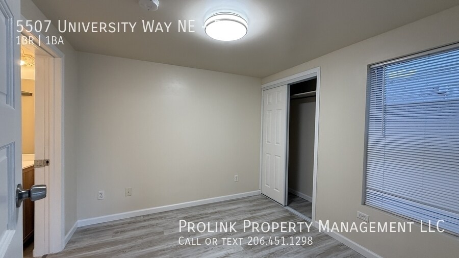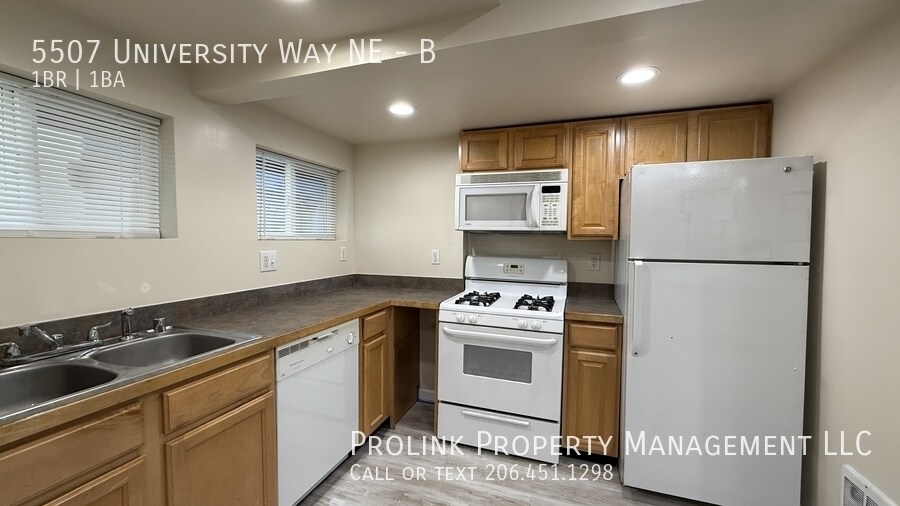 5507B University Wy NE, Seattle, WA 98105 Email us to schedule a tour, or for more pictures/information! Tour this unit virtually: Cozy, just-updated 1BR apartment in walkable neighborhood with ensuite BA, Living Room, and Kitchen with mini breakfast bar/eating nook! Quiet location in back of the building for more privacy. Conveniently close to UW campus and Ravenna Park, plus easy access to U Village, shopping, restaurants, coffee shops, public transit! Access to shared on-site Washer/Dryer. 2025 remodel includes: - All NEW window blinds and interior paint throughout unit (ceiling, walls, door/trim) - NEW vinyl floors in BR, Living Room, and Kitchen - NEW light fixtures in BR and Living Room, plus NEW electric hot water heater - NEW Dishwasher in Kitchen * See more pictures: * The information above has been given to us by the Owner or by sources deemed credible: We have no reason to doubt its accuracy, but we do not guarantee it. Prospective tenants should take care to verify information contained above * Available 12/01 * 5507B, $1,395.00/mo: 1BR, 1BA, Kitchen, Living Room * Terms: No short-term/month-to-month leases, no exceptions. Minimum 12-month term required, longer leases preferred and may be given priority; 1st Month's Rent and Last Month's Rent are due at lease-signing, refundable Security Deposit equaling one month's rent due at start of lease * Rent includes charges for the reasonable usage of standard water/sewer/garbage services by one adult occupant only; Tenant responsible for all other in-unit utilities (electric, gas, Internet, etc.) * No Smokers, No Pets * Satisfactory credit check, background check (where applicable), and rental references required for all applicants and expected co-occupants aged 18 and over; non-refundable application fee is $45.00 + tax per applicant (or as charged by screening agency) * Leased by Prolink Property Management, LLC, 14670 NE 8th St, Ste 168, Bellevue, WA * Equal Opportunity Housing: We are pledged to the letter and spirit of U.S. policy for the achievement of equal housing opportunity throughout the Nation. We encourage and support an affirmative advertising and marketing program in which there are no barriers to obtaining housing because of race, color, religion, sex, handicap, familial status, or national origin