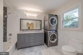 Welcome to 5508 Brookland Road, a fully remodeled 2-story rambler with a detached 2-car garage backing to trees in Alexandria’s desirable Brookland Estates. The front patio gives a cheerful first impression. Sited on a flat over 1/3 acre lot, this 4-bedroom and 3 full-bath residence has all the right touches. New windows have been installed. The kitchen has been thoroughly reimagined with modern white cabinetry, granite counters, center island with pendant lighting, stainless appliances and an oversized deep farmhouse sink. Just off the kitchen is the expansive living room with its classic fireplace. All three baths have been stylishly renovated. There’s a washer/dryer on both levels for your convenience. The huge lower level is light and bright with all the light streaming through the many windows. It offers lots of options and walks out to the private back yard with the lush canopy of trees. The garage has two windows, a side door and room for lots more than just 2 cars. This fine property is located close to shopping, all commuter routes and a quick hop to Old Town.