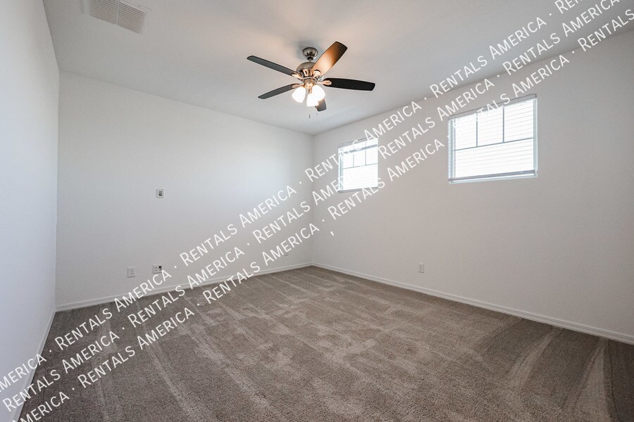 Come check out these 5 beds, 3 ba home with den and loft in Camelback Ranch. Great floorplan with tile throughout and carpet in bedrooms. Kitchen opens out to the family room and comes with stainless steel appliances, granite countertops, a large island w/breakfast bar, & a walk-in pantry for all your storage. Main bedroom is upstairs dual sinks, tub, separate shower, and a walk-in closet. Come relax in the backyard landscaped with artificial grass and a covered patio. Schedule your showing today. One Time Admin Fee: $300, Pet Deposit: 300/pet (if applicable), Service Fee: 2%. $39/month Resident Benefits Package, Helping Heroes Discount Available! Assigned Outdoor Parking Carpet Cats Allowed Ceramic Tile Disposal Dogs Allowed Dryer Garage Gated Community Pets Allowed Vinyl Washer