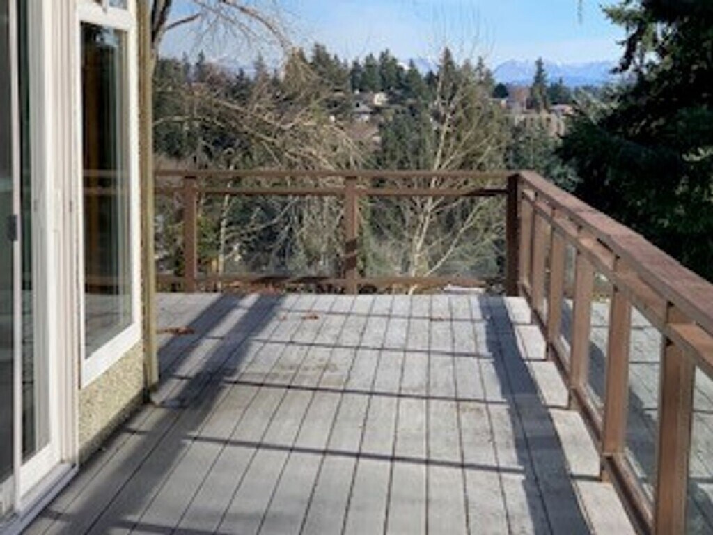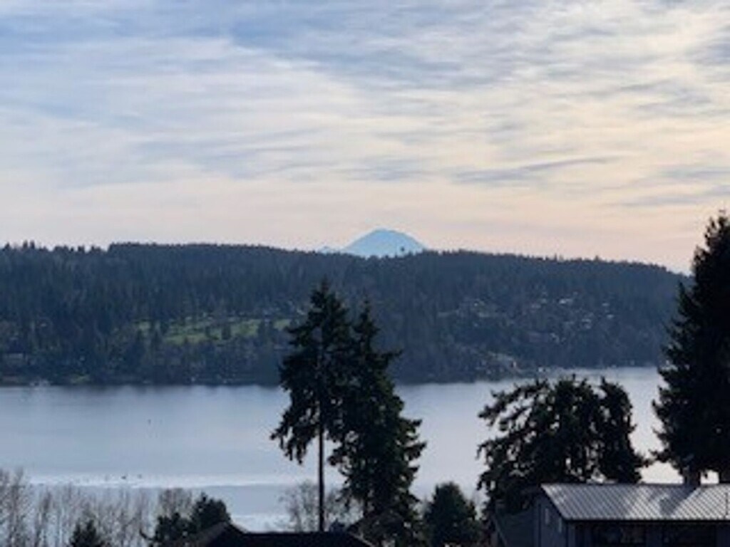 4 bedroom 2.5 baths Mid-Century Modern home with views of Lake Washington and Mt Rainier! Minutes from Lake Forrest Shopping Center. Large windowed living room with a stone fireplace that leads out to the impressive deck. The main bedroom and bath walk out to same deck. Updated kitchen with breakfast bar. Lots of storage. Dining room off the kitchen. Large lower level family room with fireplace where you can walk out to back yard and patio. Lower level office space with the 4th bedroom and bath. 2 Bonus rooms. One can be storage or gym and the other can be a work space. Large laundry room and extra storage. Two car carport. Dead end cul-de-sac street. Did I mention the views? Tenant to pay all utilities. Dogs under 60 pounds and cats welcome. Must fill out pet application. No smoking. Security deposit equal to rent. Showings by appointment only. Please fill out a guest card to schedule day and time. Further questions please contact Naeemah at