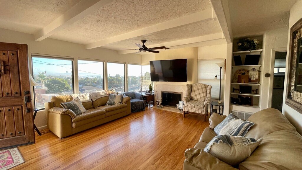 This 3-bedroom house on Bay St. is just high enough on the hill to offer ocean views but still close enough to walk into the center of Pismo and to the beach. The house maintains its original charm in the hardwood floors and architectural details but offers moder amenities like the updated kitchen and master bathroom. The kitchen is spacious and offers a blend of style and functionality with granite countertops and extends through to the backyard patio with a coffee bar opposite the laundry room. The living room is accentuated by a cozy fireplace, perfect for those cooler evenings, and flows comfortably into the dining room and kitchen. The primary bedroom suite is a tucked away in a private corner of the house with a walk-in curbless shower. The house features archway doors and decorative ceiling details adding a touch of elegance and a nod to its historical roots but the real showstopper is the breathtaking ocean views, offering a serene backdrop to this beautiful home. There is a large backyard, a front patio with ocean views and a one car garage. Professionally managed by Link Real Estate Group, Inc. Lic#02180351