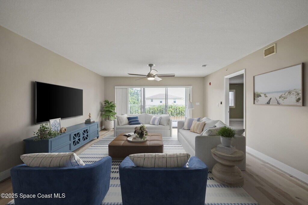 Spacious 3BD/2BA condo in the desirable Bayport community! This 2nd-floor unit offers 2,032 sq ft of open living space with vaulted ceilings,a split-bedroom floor plan,and tons of natural light. The large eat-in kitchen features a breakfast bar,pantry,and plenty of storage. The primary suite includes his-and-hers closets,dual vanities,garden tub,and walk-in shower. Relax on the screened balcony with beautiful sunset and rocket launch views. Amenities include a 1-car garage,in-unit laundry,elevator access,heated pool,clubhouse & car wash area. Rent includes cable,water,trash,and exterior maintenance. Walk to Manatee Park & just minutes to beaches,Port Canaveral,and dining.