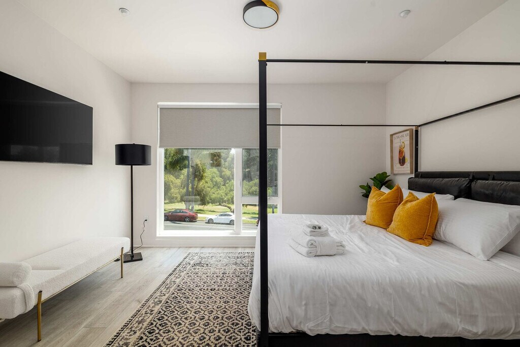 Welcome to this modern, updated 3-bedroom, 3.5-bathroom luxury townhome in a prime San Diego location. This three-story townhouse offers a fully equipped and stocked kitchen, central AC, and smart TVs. Enjoy the convenience of a dedicated parking garage and street parking, along with high-speed internet. The rooftop patio provides stunning views of Balboa Park. This spacious home comfortably accommodates six guests across three beautifully appointed bedrooms, each with its own en-suite bathroom for added privacy and convenience. The upstairs bedroom features a queen bed and a dedicated rooftop patio with sweeping views of Balboa Park and the city. The master bedroom offers a luxurious king-size bed, expansive windows overlooking Balboa Park, a generous closet, and a serene, spa-like en-suite bathroom. The third bedroom includes a cozy queen bed, plenty of natural light, a full closet, and its own private bathroom. Fresh linens, quality bedding, and thoughtful design details ensure a restful and stylish stay for every guest. The townhome includes one dedicated parking garage and street parking. Located in the heart of Bankers Hill, this townhome is directly across from the iconic Balboa Park, with its stunning gardens, multiple museums, and the world-famous San Diego Zoo. Enjoy the historic, upscale Bankers Hill neighborhood, featuring farm-to-table restaurants, trendy sushi options, a neighborhood brew pub, and a reservation-only speakeasy. A short walk takes you to Little Italy, known for its patio cafes, renowned restaurants, pubs, ice cream parlors, and galleries. You are also a short 5 to 10-minute car ride to downtown, Petco Park, the Gaslamp Quarter, Bayfront Park, San Diego Convention Center, Seaport Village, Cruise Ship Terminal, and Old Town. The famous Hotel Del Coronado and the beaches of Coronado are just an 11-minute ride away, while Sea World and the beaches of Pacific Beach and Mission Beach are a 15-minute ride. This home is located in a vibrant, central area of San Diego, just a few minutes from the airport, so you may occasionally hear planes flying overhead. Quiet hours are between 22:00 and 08:00. The property is governed by a homeowners' association, and violations of community rules may result in fines and/or immediate removal. Strict rules include occupancy limits, a visitor policy, noise control, and a no-smoking policy with a $500 fine for violations. Please wash any used dishes, remove excess trash, and return any moved furniture to its original position before checkout. Lock all doors and windows before leaving the home. Registration Number: STR-12022L [SI]