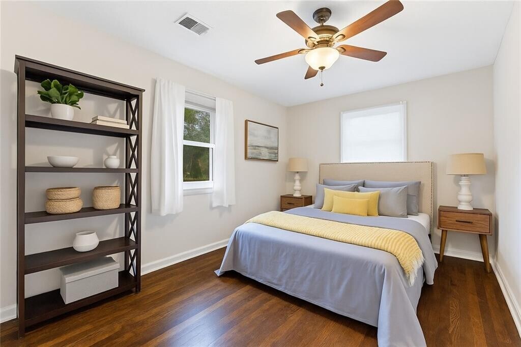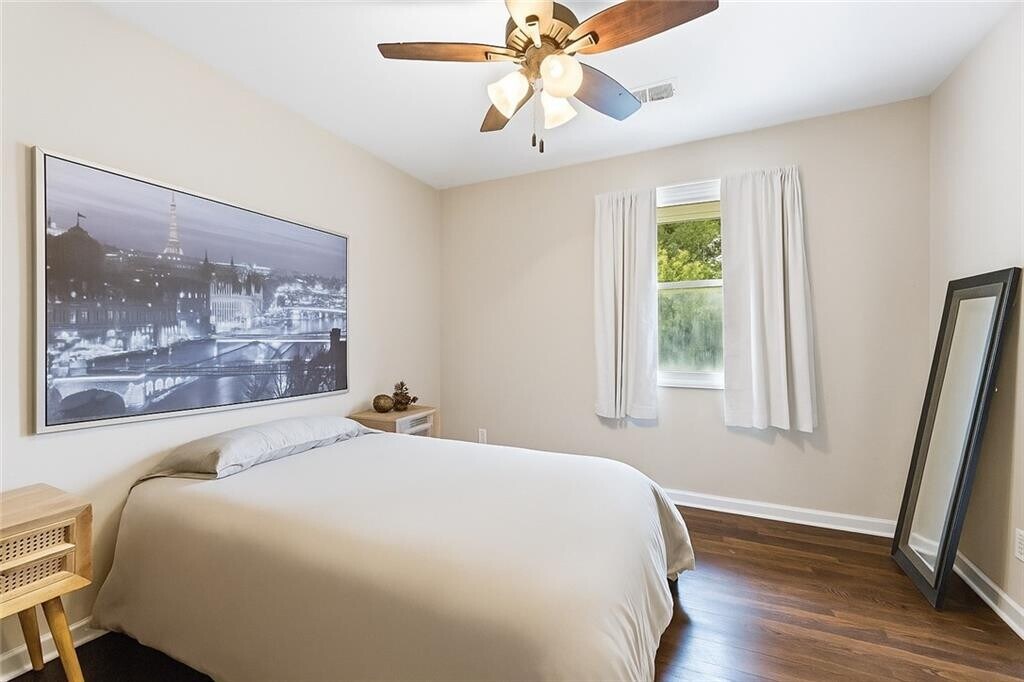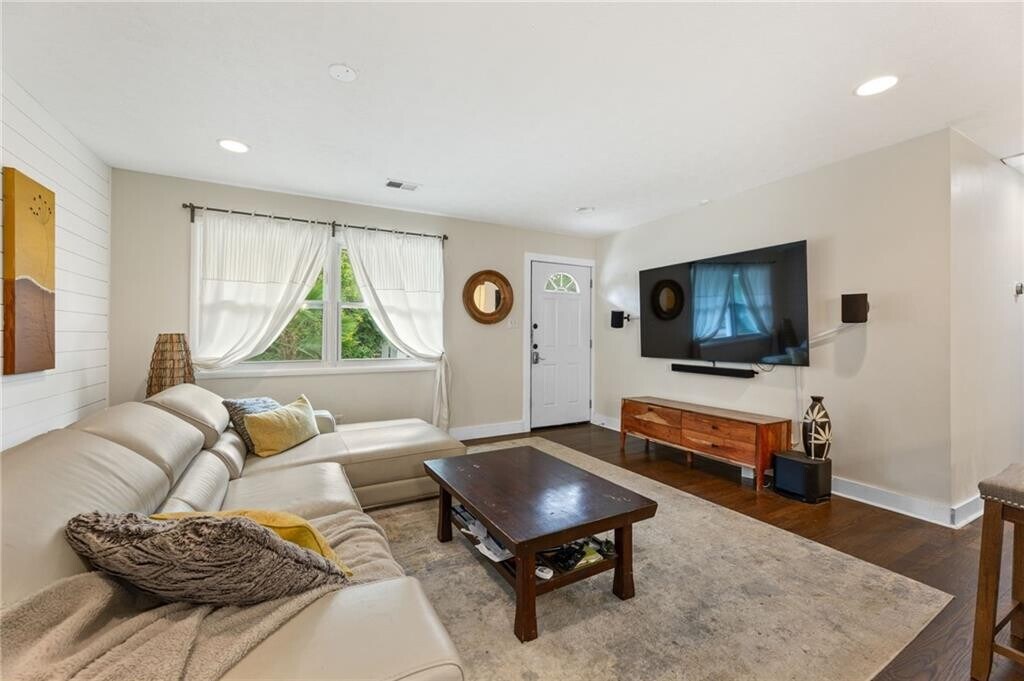 Completely updated,charming home in Smyrna! Amazing rental opportunity. This is not your typical Grandma's ranch... If you are looking for light,bright and renovated do not miss this gem! Recessed lighting,hardwood floors,updated kitchen with stone - quartz- counters and stainless appliances open to dining room and family room with loads or natural sunlight. The primary suite features a private bath! This home was recently renovated with new master bathroom tile shower. New driveway parking area,new electrical,newish plumbing,kitchen and bathrooms! Situated on a fenced leveled. And it has an outside plug for electric cars. This home has easy access to 75,285 and Hartsfield Jackson Airport. If the outdoors is your jam you will love the private backyard with fireplace. Just a 10 minute Uber ride to The Battery and Truist Park you will enjoy the best in entertainment and recreation.