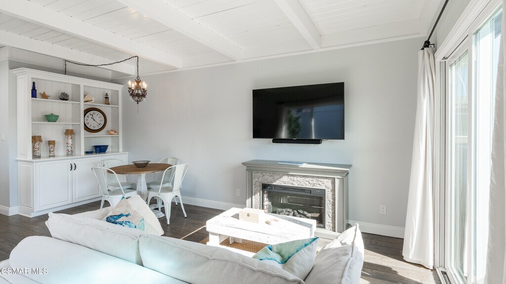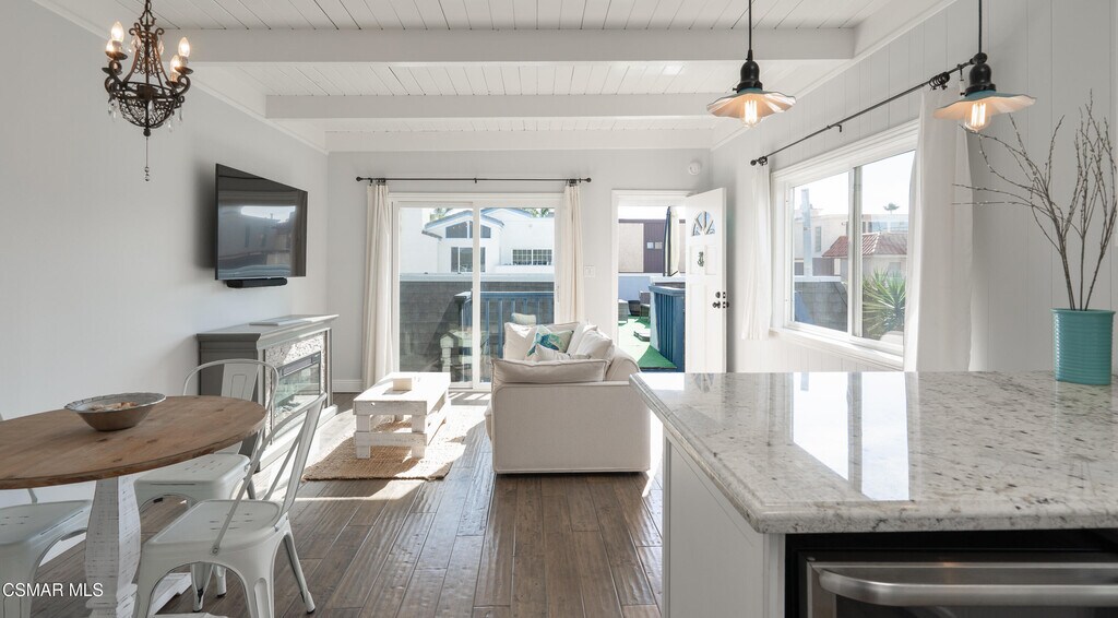 Live where others vacation! This fully furnished beachside retreat offers effortless coastal living just steps from the sand.Located in sought after Oxnard Shores, this thoughtfully designed 1-bedroom, 1-bath retreat offers 537 sq. ft. of warm, modern comfort, ideal for seeking a peaceful full-time residence by the ocean.Inside, you'll find a light-filled living area with hardwood floors, a cozy dining space, and a well-equipped kitchen--all fully furnished with clean, coastal-inspired touches. Just unpack your bags and settle in.Enjoy subtle ocean sounds from your home, and take in the peek-a-boo view of the Pacific from the shared rooftop deck. Perfect for morning coffee or evening unwinding.Extras include a private garage with in-unit washer/dryer, plus plenty of storage space.This home is available for long-term rental and comes fully furnished. Ideal for someone ready to trade chaos for calm and embrace year-round beachside serenity.