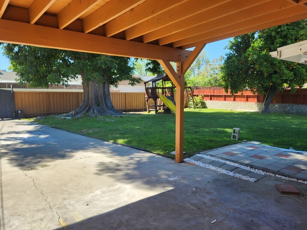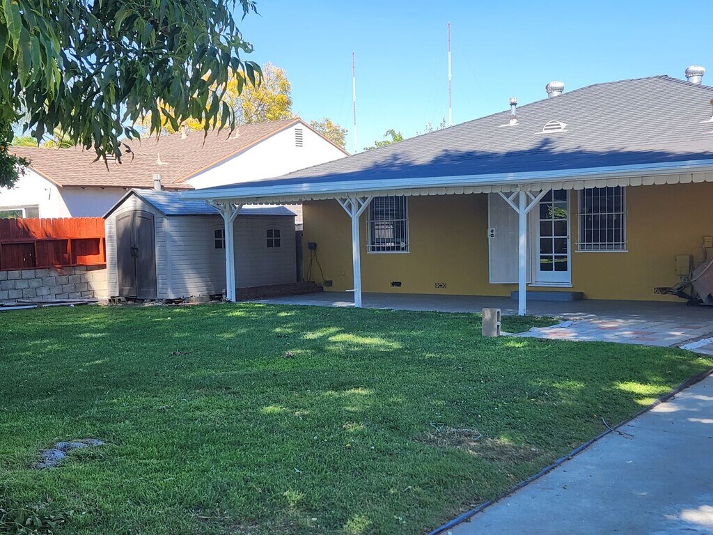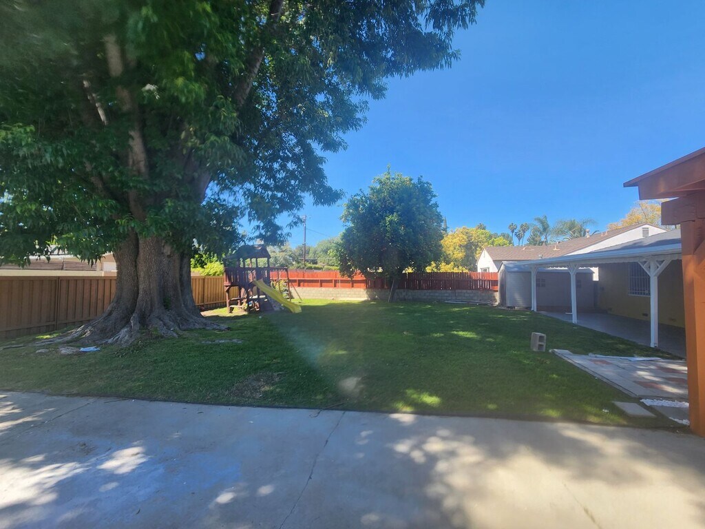Sherman Oaks 4 bedroom with large yard! The property is centrally located near the Studios, freeways, and canyons. Plenty of restaurants, shopping and more.... The home features all the classic characters of the 1950's with modern touches. The home is bright with large windows and has hardwood floors throughout, recessed lighting, a fireplace, a convertible den, updated bathrooms, a newer kitchen with granite counters, a stove, a dishwasher, a built-in microwave, laundry hook-ups, a large additional primary suite with a walk-in closet, and an attached bathroom. The backyard is an oasis with lush landscaping and parking gated access via an alley with a carport and EV charger. A massive ash tree provides incredible shade, an orange tree with plenty of fruit, a large storage shed, a large covered patio, and a large lawn with an optional swingset. One year minimum lease. Owner pays for gardener Tenant pays for all utilities The home comes with a stove, tenant is to provide their own refrigerator and washer/dryer.