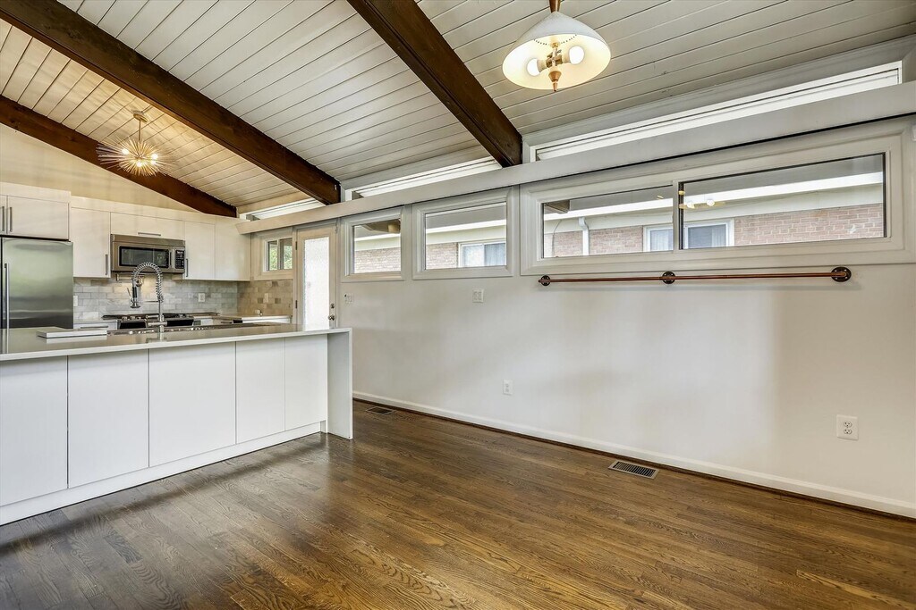 Gorgeous Contemporary Mid Century Modern style Home in Greenwich Forest 3 Bed + LL Den, workshop, home office, with en-suite, 3 Full baths - Gem of a house -- seconds to Downtown Bethesda & NIH. Amazing LOCATION!!! Gleaming wood floors, wood burning fireplace, cathedral ceilings with wood planks. Natural light pours into this beautifully designed space. Updated kitchen with center island, stainless appliances and breakfast bar. Fully finished lower level with rec room and 4th room. On Bus Line to Bethesda M-E-T-R-O. Easy access to NIH/Walter Reed, Bethesda, DC, I-495, I-270. A commuter's dream location!! ****Also FOR Sale $1,095,000.00****