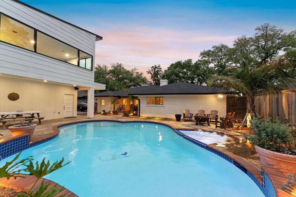 Welcome to this stunning 4-bedroom,3-bath brick home with over 3,100 sq. ft. of combined living space,including a detached garage apartment built in 2025. The open-concept interior offers tile flooring,dimmer lighting,ceiling fans,and a striking corner fireplace. The chef’s kitchen features solid slab granite countertops,a center island,and stainless steel appliances. Step outside to your private backyard oasis,featuring a pool,hot tub (remotely operated),manicured lawn,and a large covered patio with a ceiling fan — perfect for entertaining. Ideally located near 610 & 59N,minutes from the Medical Center,Meyerland,Bellaire,JCC,parks,shopping,and dining. This home blends elegance,comfort,and convenience. Don’t miss your chance — schedule a private tour today! MLS# 44492517