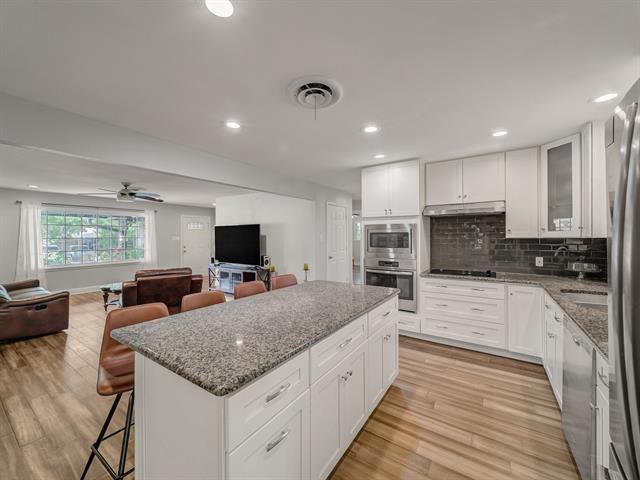 Completely renovated, move-in ready 4 bedroom, 3 bathroom home on .201 acres. Upstairs features a hugh second living room with a bedroom and full bathroom. This home offers style, space, and located right off I-20! You’ll love the open concept floorplan featuring bamboo flooring throughout the main living areas and in all of the bedrooms. The stunning kitchen boasts many beautiful soft-close cabinets, modern backsplash, granite countertops, oversized island, and stainless steel appliances. Great size formal dinning overlooking the tranquil back patio. Bathrooms are recently updated with modern finishes including marble like ceramic tile, sliding glass shower doors and updated vanities and lighting. 2nd story is perfect for a multi-generation living with all the space an older child or in-law would want. Step outside to large backyard with a quality privacy fence, mature trees, sprinkler system, covered back patio, stone sitting area with firepit, elaborate chicken coop, and 2 storage sheds! Other added values are the metal roof, and updated electrical wiring and updated service panel! Driveway was also redone and expanded to accommodate guest or addition work vehicles. Located near Hulen Mall, Trader Joes and tons of entertainment. Here you will meet great neighbors with excellent shopping, and enjoy easy access to major highways making this a wonderful central place to call home. No pets.
