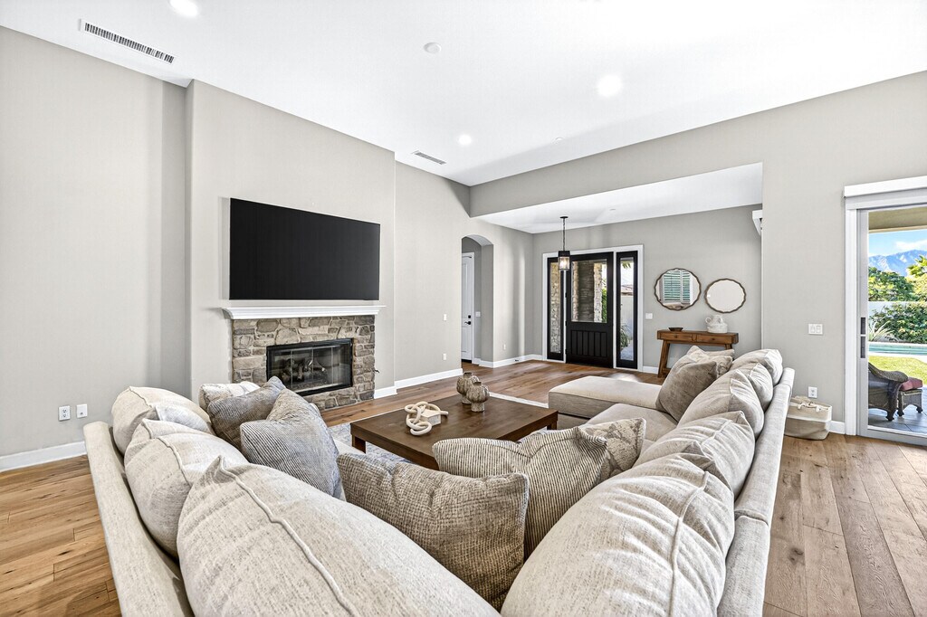 Discover elevated desert living in this exceptional 2019-built residence offering approximately 3,180 square feet of refined living space on a generous 10,890 square foot lot,located inside the coveted Greg Norman Gate of PGA West. Thoughtfully crafted with sophisticated finishes throughout,the home showcases a chef's kitchen,honey-honed wood flooring,and a flowing,open layout designed for effortless entertaining. Each of the four spacious bedrooms features its own private en-suite,while the primary retreat delivers a true spa-like sanctuary. Expansive sliding glass doors form the heart of the home,seamlessly blending interior comfort with the stunning desert surroundings. Step outside to a resort-style oasis highlighted by sweeping mountain panoramas,vibrant sunset views,and an inviting patio complete with a fireplace,TV,and luxurious seatingideal for relaxing or hosting guests. Turnkey and impeccably furnished,this residence is perfectly positioned just minutes from world-class golf,Old Town La Quinta's dining and shopping,and the iconic Coachella and Stagecoach festival grounds.