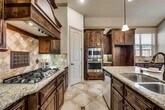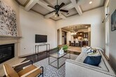 Beautiful 4 bedrooms, 3 baths and 2 cars garage. Washer, dryer, and full-size refrigerator INCLUDED in rent! As you walk through the wood door, you will notice the exquisite details & upgrades. From hardwood & tile flooring to high ceilings & natural lighting, an elegant open concept kitchen welcomes you with big granite countertops, walk-in pantry, & SS appliances. The cozy family room has a coffered ceiling & gas fireplace. The private master suite also has a coffered ceiling & comes with an attractive bathroom that features separate vanities, a jacuzzi tub, & shower. A large 9-ft barn door separates the kitchen from guest rooms for added privacy. The backyard features an enlarged covered patio that provides a perfect backdrop for all occasions.