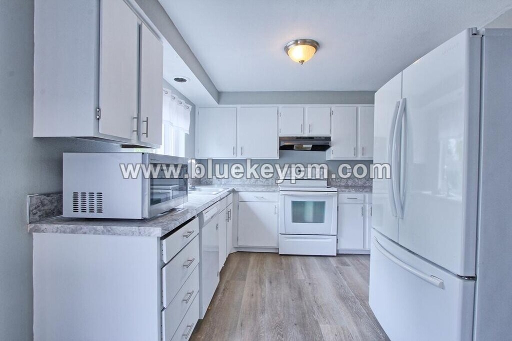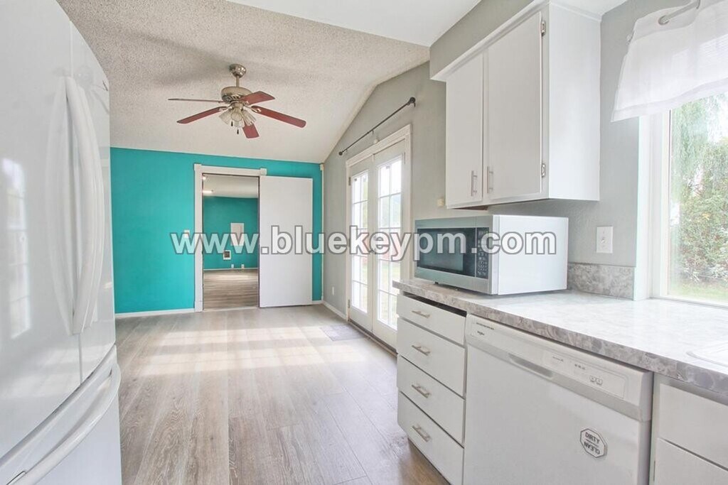 Fabulous 3 bedrooms, 2 bathrooms home with a covered entry, large living room and kitchen, engineered wood floors, vaulted ceilings, 2 parking spaces and large fully fenced yard. This home is located off of SR 500 at NE 54th Avenue within 5 minutes to shopping and gym. Easy access to I-5 or I-205 for commuting. Close to shopping. This home has spacious living areas, large windows, French doors and an aesthetic fireplace in the living and dining rooms. The kitchen has an abundance of cabinets, counter space and a window overlooking the yard. A convenience washer and dryer are available for your use. The main bathroom has a very large vanity and a tub/shower combo. The bedrooms are all spacious with generous closets. You are sure to love this primary bedroom! It has large windows, mirrored closet doors and a large bathroom with ample vanity for storage and a shower. This home has a very large yard that is fully fenced. Tenants maintain the yard and all utilities. There is no hoa. Dogs are welcome by owner approval. Additional $500 refundable pet deposit. View our VIDEO tour on our website at Applications are online at our website Call Blue Key Property Management, Inc. at to schedule a showing Monday-Friday 9 am to 5 pm. $2295 Rent; $2295 Security deposit, $350 non refundable fee, $55 non refundable screening fee per adult age 18 and older. $500 additional refundable deposit per pet if owners allow pets. Renter’s insurance required. For available homes, more information, rental criteria, video tours or online applications visit Blue Key Property Management, Inc. licensed in WA and OR. 5513 NE 39th Street, Vancouver, WA 98661