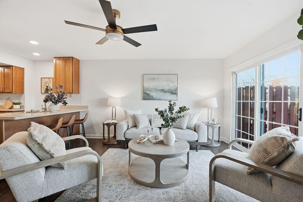 Updated end unit in Bethel Commons! This gorgeously updated end-unit condo is tucked away on a quiet street and offers a tranquil water view in the highly sought-after Dublin School District (Columbus taxes). Freshly painted throughout,featuring new carpet,new lighting,removed textured ceilings and an oversized 2-car garage. This home is truly move-in ready. The spacious layout includes 3 bedrooms,2 full bathrooms,and 2 additional half bathrooms,offering flexibility for everyday living and guests alike. The main level showcases a bright family living room with a gas fireplace,dining area,and casual dining space. The finished lower level adds valuable living space with a large rec room and additional half bath,ideal for a home office,gym,or media room. Washer/Dryer hook-up in unfinished portion. Enjoy the convenience of a wide driveway,generously sized bedrooms,and peaceful water views right outside your door. Bethel Commons residents benefit from fantastic HOA amenities including a clubhouse,fitness center,swimming pool,event space,landscaping,plus water and sewer. Tenant responsible for all other utilities. Ideally located minutes from Sawmill Road,Bethel Road,major freeways,shopping,dining,hospitals,parks and schools.