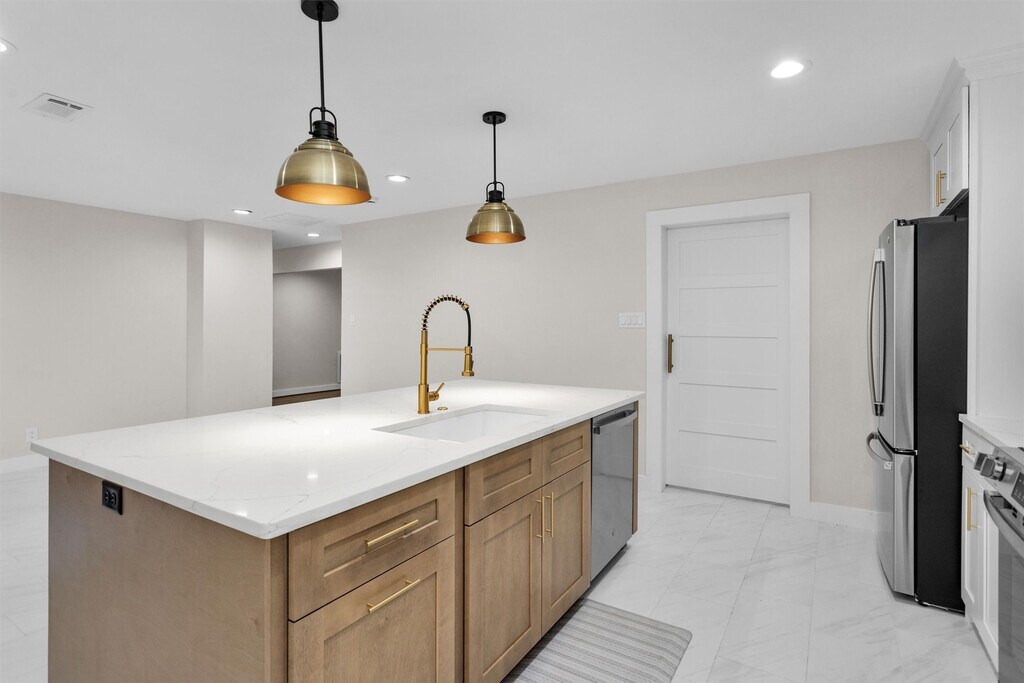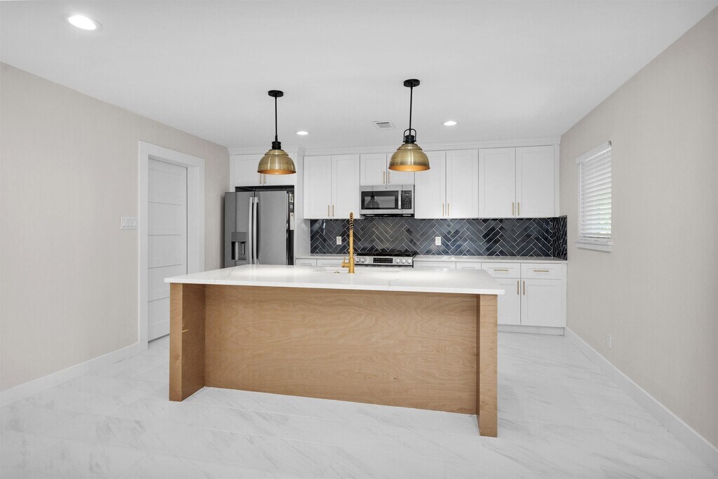 Set on a quiet,tree-lined street in Westbury,this fully remodeled 3-bedroom,2-bath,1-story brick home is move-in ready with beautiful updates throughout. The kitchen pops with quartz counters,a subway tile backsplash,brass accents,a walk-in pantry,and stainless steel appliances — and yes,the refrigerator stays! The primary bedroom has its own private bath,while two more bedrooms and a second full bath sit just down the hall. A utility room with new full-size stackable washer and dryer also connects directly to the garage for everyday convenience. Out back,mature shade trees frame a generous yard complete with a storage shed for tools or hobbies. Westbury remains one of Houston’s most established neighborhoods,loved for its big trees,neighborhood parks,and easy access to the Medical Center,Galleria,and Memorial City. MLS# 64513248