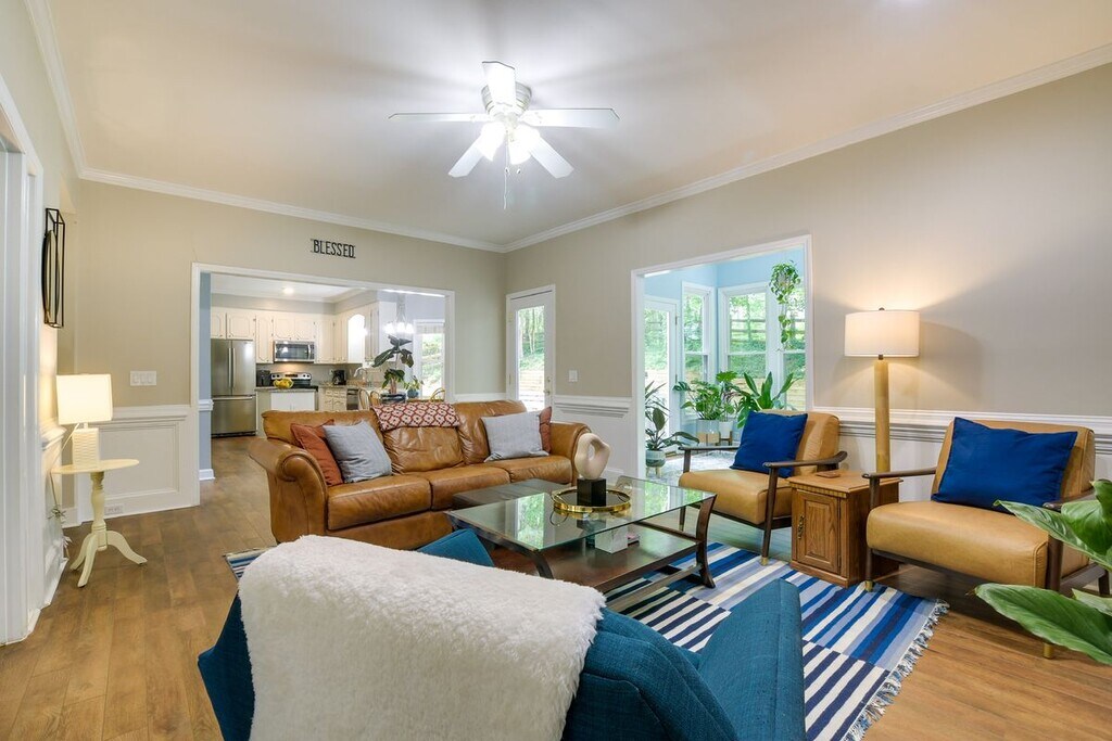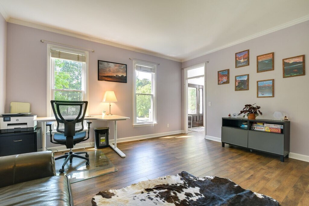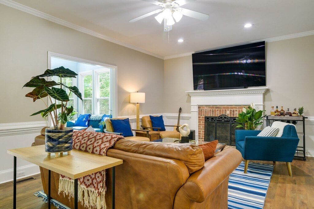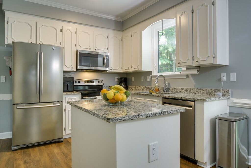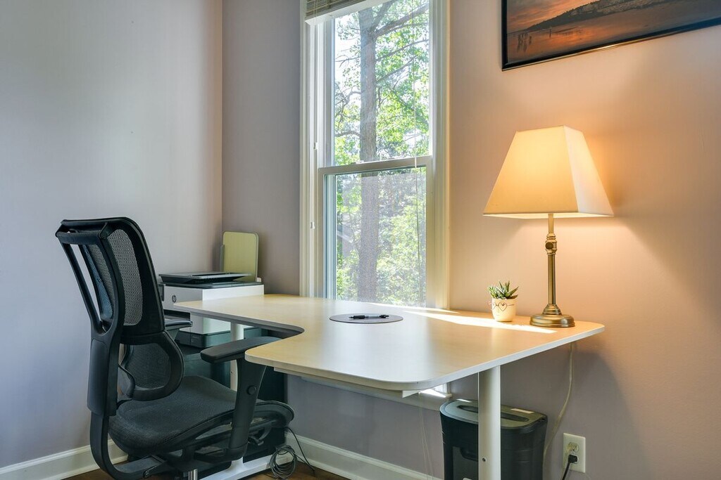 Welcome to your future home in the charming Woodlake district of Durham, NC just 15 mins from Duke and UNC. This inviting 4-bed, 2.5 bath, 2700 sq ft haven offers a serene living experience with access to local grocery, cafe, restaurants, and Southpoint mall all within a 5 minute drive. My house is in a safe, private, established neighborhood in a good area of Durham. This charming pet friendly home offers ample space for relaxing by the fireplace, grilling on the back deck, and enjoying lakeside trails and a walks to the park. The house is filled with little luxuries. Invigorate your morning coffee in the sunroom, marvel at the game on the huge 85" 4K TV by the gas fireplace, and wind down with a soak in the garden tub and wrap yourself in warmth with the towel heater. Upstairs you'll find spacious bedrooms and bathrooms, including a primary suite with walk in closet, rainfall shower, and a two-person tub. There's even a bonus room that can double as an upstairs family or play room. Enjoy year-round comfort with central heating and air conditioning, complemented by ceiling fans that enhance airflow throughout the space. Out back there is a deck, patio, and fully fenced backyard. There is a metal wire fence all the way around along the wooden post fence. The neighborhood lake and trails, the American Tobacco Trail greenway, and the nearby Piney Wood Park Park provides a perfect spot for outdoor recreation on foot or two wheels. While rent includes landscaping, trash and recycling service, and full furnishings! Utilities (water, electric, gas) are set up and ready for you to customize your living experience. Experience relaxation, luxury, and convenience in this delightful Durham home. Don't miss out on this opportunity—schedule a viewing today and envision your new life in Woodlake! UPGRADES in 2025: -New lighter flooring to brighten the home -New LG french door refrigerator for feeding your family -New paint downstairs and in the primary bedroom for soothing comfort -New skylights in bathrooms for energizing sunshine -New tankless water heater for long hot showers -Towel warmer in primary bathroom to wrap yourself in warmth -Back deck refinished Upgrades in 2026 - New mailbox and garage door spring