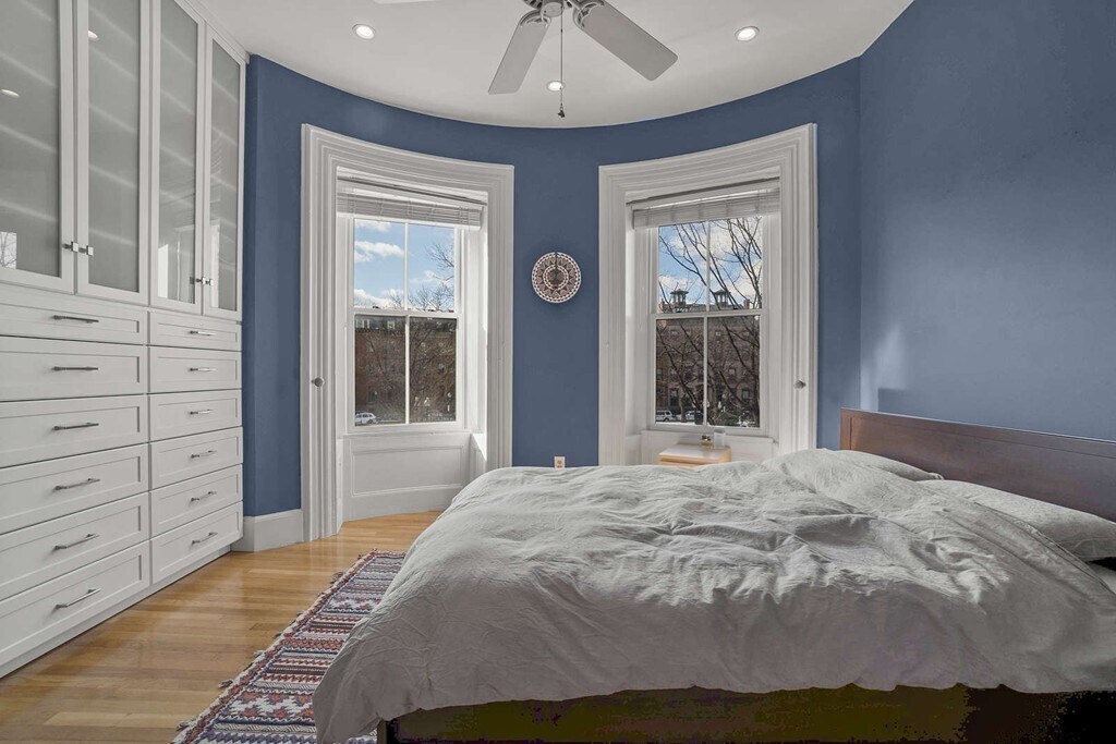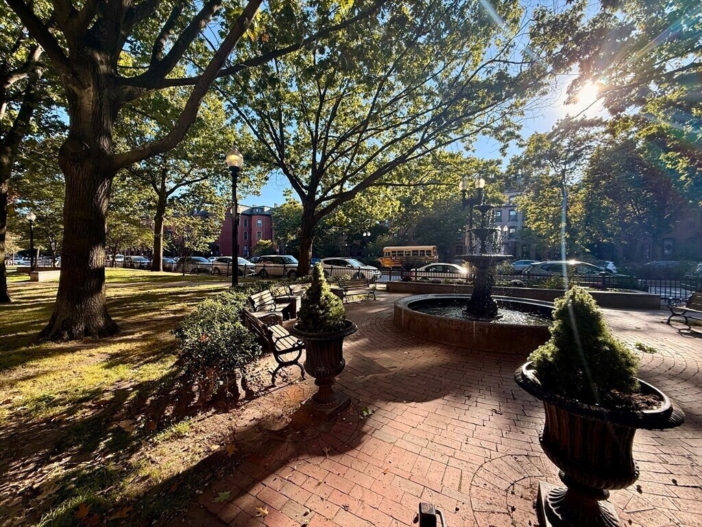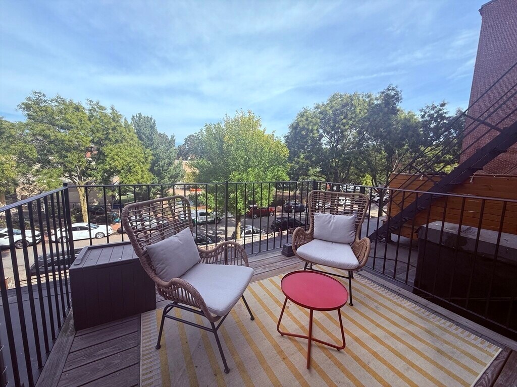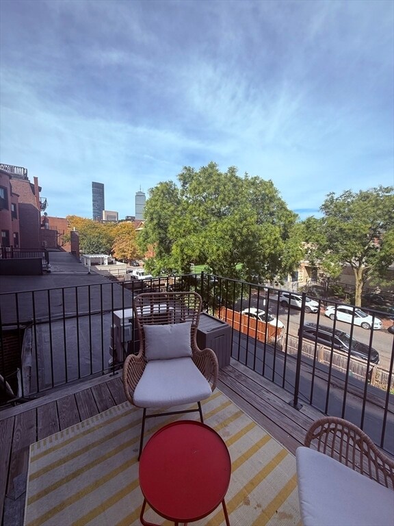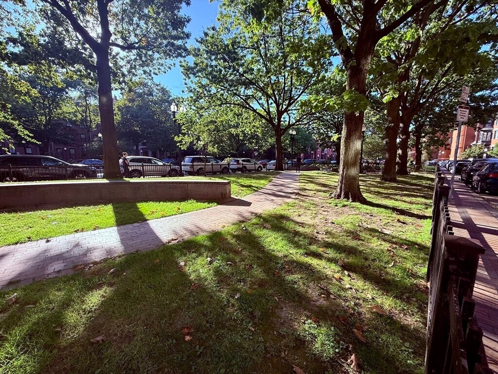 Gorgeous renovated 2 bedroom floor through overlooking Chester Park with a private deck and Back Bay views. Unit is 1 level above parlor with tons of natural light,beautiful hardwood floors and great ceiling height. The renovated kitchen with granite countertops and a breakfast bar opens to the living and dining rooms with a hidden office nook. Tons of storage throughout with custom built-ins and closets. A/C,in-unit laundry,private deck and common back yard,park and city views. Available December 1 MLS# 73439616