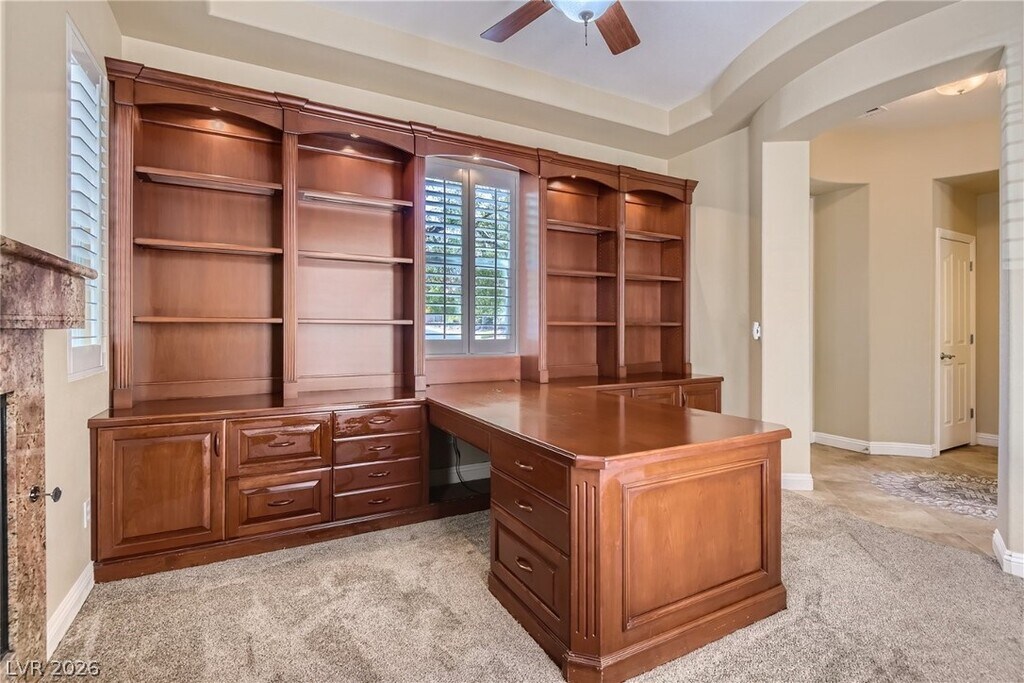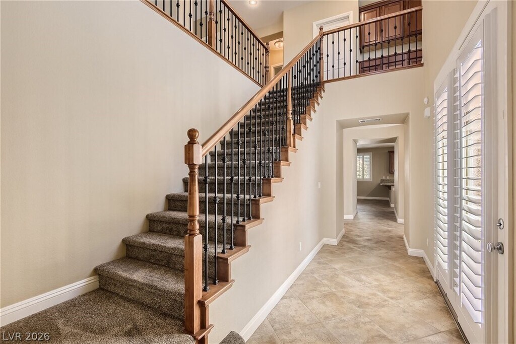 Spacious and premium in gated Paseos of Summerlin. Multiple upgrades including shutters, built-ins, two balconies, two fireplaces, loft, and luxury master suite with separate custom closets. Large gourmet kitchen and wet bar with wine fridge. Downstairs guest bedroom with full bath. Perfect for outdoor living with sparkling pool, spa, covered patio, and private courtyard. Overhead storage, built-ins, EV charger, and second refrigerator in garage. Close to everything in Summerlin – Red Rock Canyon; downtown Summerlin; City National Arena; the Ball Park and more. Weekly pool service, biweekly landscaping, sewer and trash included in rent.