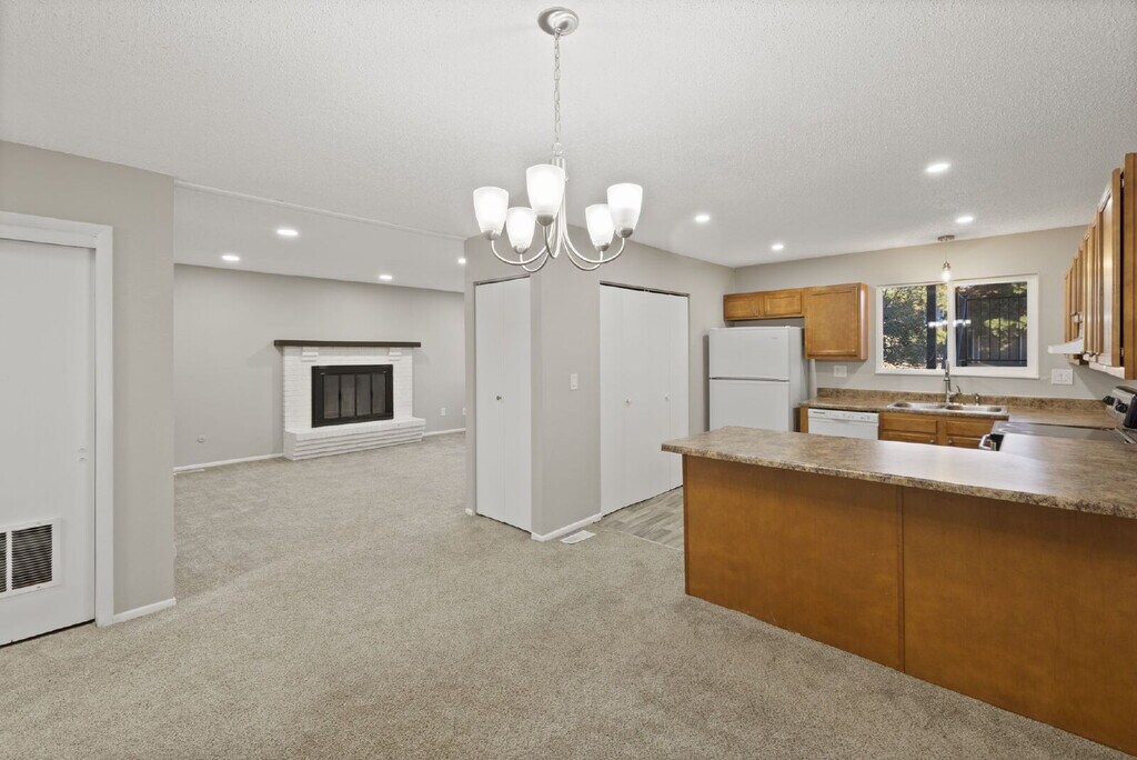 Welcome home to this bright and inviting 2-bedroom, 2-bath apartment located on the ground floor of a quiet four-plex at 5520 Fiesta Lane, Unit B. This easy-access unit offers plenty of natural light throughout, creating a warm and welcoming atmosphere the moment you walk in. Inside, you’ll find a spacious living room with a cozy wood-burning fireplace and windows that fill the space with sunlight. The kitchen comes equipped with a dishwasher, disposal, electric stove, oven, refrigerator, and freezer, everything you need for comfortable everyday living. Both bedrooms are nicely sized, with two full bathrooms that make sharing space effortless. This home features a mix of carpet and laminate flooring, central air conditioning, and washer and dryer hookups for your convenience. A covered carport provides one dedicated parking space, and exterior and parking area maintenance is handled for you. Please note, this unit does not include a backyard or fenced area and is not pet-friendly. Washer and dryer appliances are not provided, only hookups. Enjoy the simplicity of single-level living in a bright, well-maintained home with no stairs to climb and easy access to everything you need! Schedule a tour today!