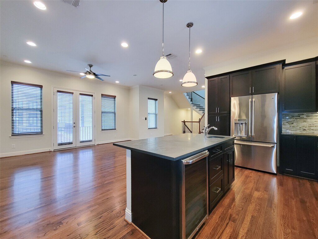 The first floor features a beautiful foyer and a bedroom with full bathroom. The second floor has an open concept living room,dining room,kitchen,and French doors that open to a balcony to entertain your guests. The large kitchen has stainless steel appliances,smooth slate stone countertops and a wine-cooler under the island. On the third floor,is a huge master bedroom with spacious walk-in closet,natural lighting and master suite oasis,along with another bedroom with full bathroom. Outside,is a side-yard to relax with some outdoor space or let your small dog wander,and gated access to the driveway for a more private feel. Refrigerator,washer and dryer included. Smart-home enabled with Nest thermostats,MyQ garage door and monitored alarm,all controlled from your phone. Great location-minutes from Memorial Park,the up-and-coming MKT Market,popular Heights Mercantile Market and hike and bike trails. MLS# 42826127