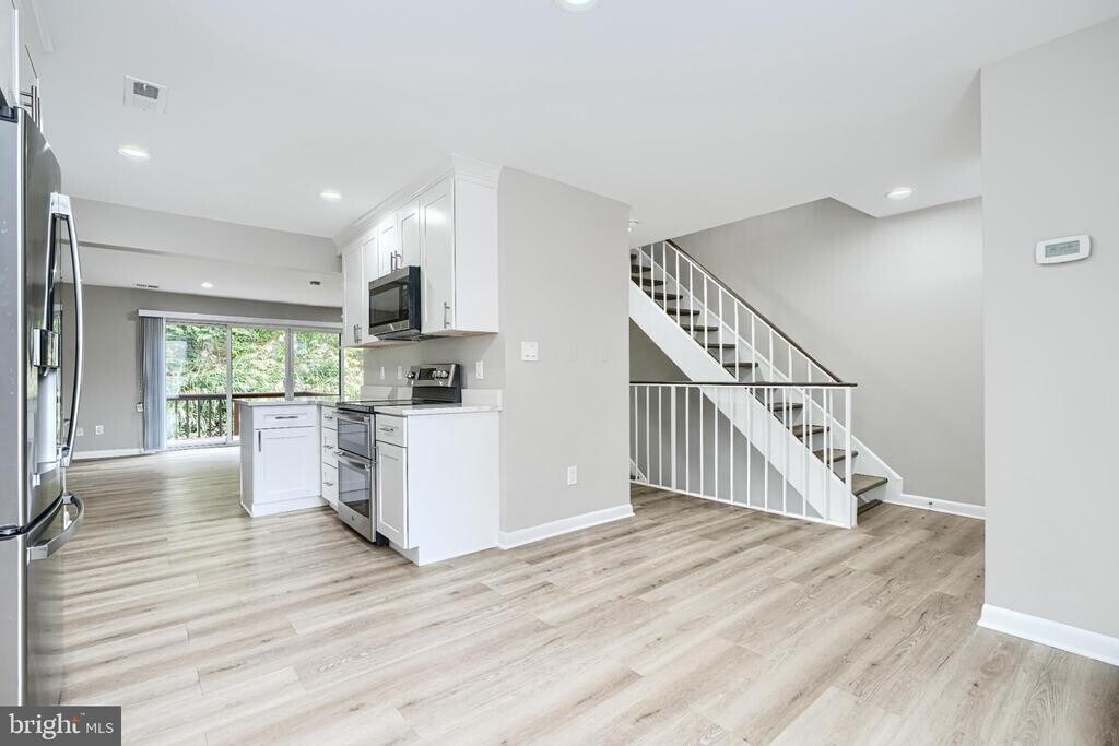 **Background and credit application required ($50). Min 670 credit** Discover a stunning end-of-row townhouse in the desirable Town Center community, where modern living meets serene surroundings. This beautifully renovated 2023 residence boasts 1,986 sq. ft. of excellent condition, featuring three spacious bedrooms and four bathrooms, including two full baths. Step inside to an open floor plan adorned with luxurious vinyl plank flooring, recessed lighting, and skylights that flood the space with natural light. The contemporary kitchen is a chef's dream, equipped with stainless steel appliances, upgraded countertops, and a convenient pantry. Enjoy cozy evenings by the fireplace or unwind on the deck overlooking lush trees and woods, providing a tranquil backdrop. The property backs to a cul-de-sac, ensuring privacy and a peaceful atmosphere. With an attached garage and off-street parking, convenience is at your fingertips. The Town Center community offers fantastic amenities, including bike trails, playgrounds, and walking paths, perfect for outdoor enthusiasts. Local parks and top-rated schools enhance the neighborhood's appeal, making it an ideal place to call home. Public services, including snow and trash removal, are included in the lease, ensuring a hassle-free lifestyle. Don't miss the opportunity to experience the perfect blend of comfort, style, and community living!