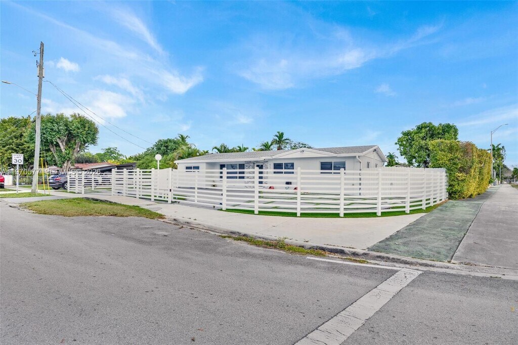 Beautifully renovated 4-bedroom, 3-bath home offering flexibility and modern comfort. The layout includes a 3/2 main residence plus a private 1/1 in-law quarter—ideal for extended family, guests, or a home office. Inside, everything has been updated with a bright, contemporary design. Large white tile floors run throughout, enhancing the open feel. The kitchen features SS appliances, wine cooler, updated cabinetry, and sleek finishes. Bathrooms have been fully renovated, and impact windows provide added security and efficiency. Zebra blinds offer both style and light control. The exterior is equally impressive. A private fenced perimeter with clicker-operated gate ensures security. The circular driveway and stamped concrete side area provide ample parking. Multiple outdoor sheds offer convenient storage. The spacious backyard is lined with palm trees, includes a mango tree, and offers canal access where you can fish from your own property. Conveniently located with easy access to major highways, commuting throughout Miami is simple and efficient. Move-in requirements: First month, last month, and half-month security deposit. Renter’s insurance required. MLS # A11970577