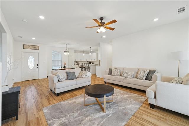 Welcome to this well-maintained 3-bedroom, 2-bath home offering comfort, space, and functionality. The open-concept layout creates a bright and inviting living area, perfect for everyday living and entertaining. The kitchen features ample cabinet space and flows seamlessly into the dining area. The primary suite includes a private bathroom and generous closet space, while the additional bedrooms are well-sized and versatile for guests, a home office, or family needs. Enjoy a private backyard ideal for relaxing or outdoor activities. Conveniently located near schools, shopping, dining, and major roadways. Schedule your showing today!