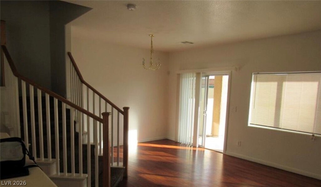 well-maintained two-story townhome located in a gated Las Vegas community. This functional floor plan offers three bedrooms, two and a half bathrooms, and a two-car attached garage. The main level features an open-concept great room that connects seamlessly to the kitchen, complete with solid surface countertops, a breakfast bar, and durable flooring. Upstairs, the primary suite provides a comfortable retreat with an en-suite bath, while two additional bedrooms offer flexible space for a variety of uses. Enjoy a private, low-maintenance backyard with a covered patio, plus a balcony for added outdoor space. Community features include gated access and a shared pool. Conveniently located near shopping, dining, and major roadways.