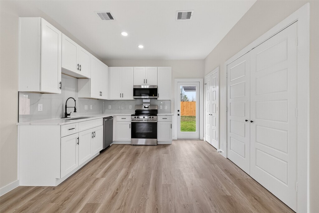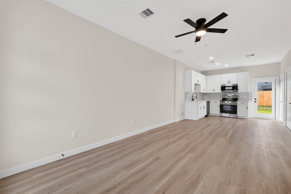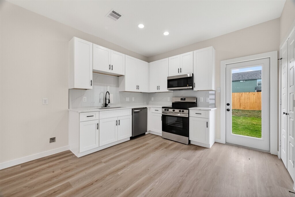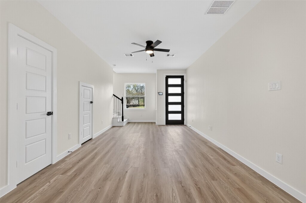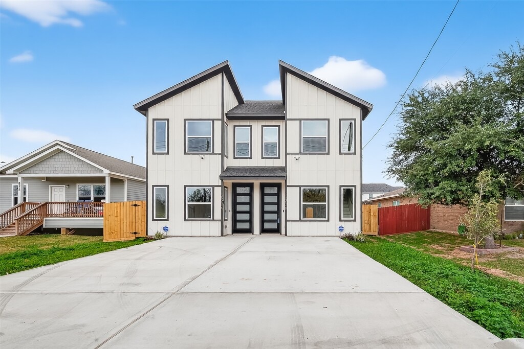 Rare opportunity to lease a brand-new,modern duplex with a private fenced backyard,separate private entrance,and parking for two vehicles! This thoughtfully designed two-story home offers 2 spacious bedrooms and 2.5 bathrooms—ideal for roommates,small families,or professionals seeking comfort,privacy,and peace of mind. The main level features an open-concept living and kitchen area,perfect for entertaining,while both bedrooms are located upstairs,each with its own private en-suite bathroom. Enjoy added privacy with a separate entrance,a full privacy fence,and enhanced security features,including an alarm system and exterior floodlight cameras. The property also includes dedicated parking for two vehicles. Conveniently located in Northeast Houston with quick access to major roadways,just 15 minutes from Downtown and 6 minutes from LBJ Hospital,offering easy commuting and proximity to shopping,dining,and everyday essentials. MLS# 90006132