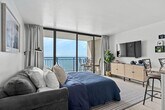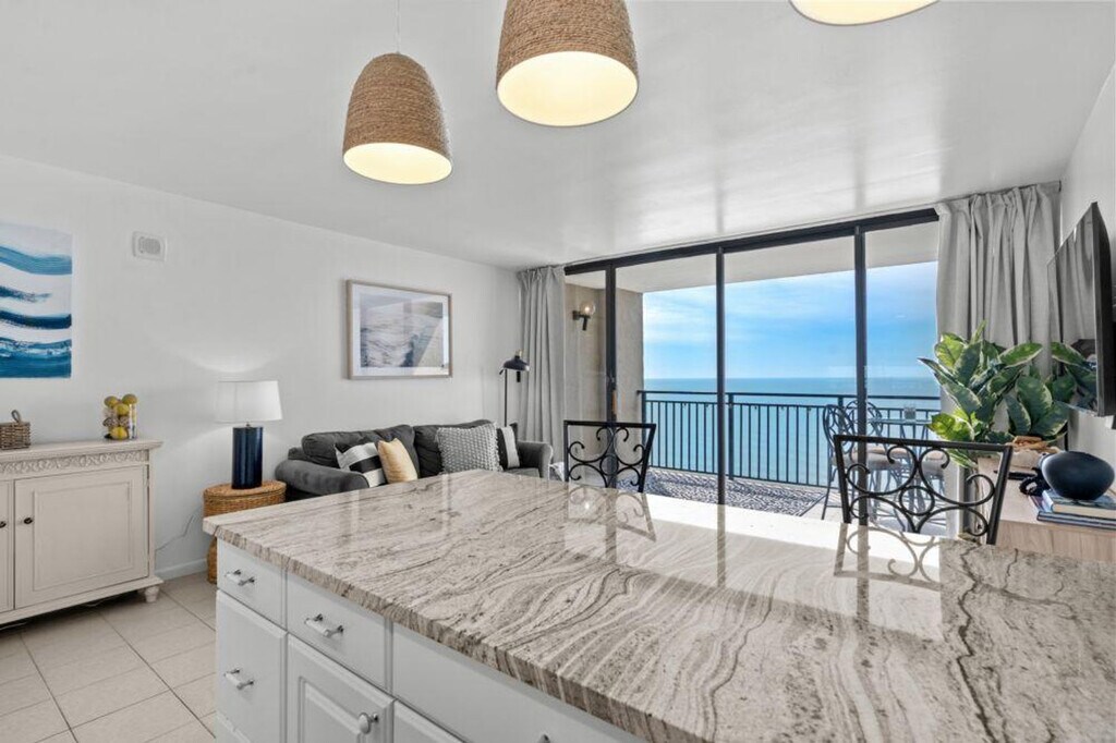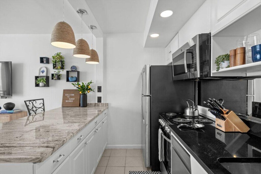 Wake up to the soothing sounds of the waves and breathtaking ocean views from the 16th floor at Sunny Shores, a cozy and inviting oceanfront condo in the heart of Myrtle Beach. Perfectly located in the vibrant Golden Mile of Cabana Row district, this charming retreat offers direct beach access and a wealth of amenities. The private balcony is the perfect spot to sip your morning coffee while gazing at the endless horizon or unwind in the evening as the sun sets over the Atlantic. From the 16th floor, enjoy a truly panoramic view of the coastline, offering a sense of tranquility like no other. The open living area invites you to relax with plush seating, a brand-new sleeper sofa, and a large TV for your entertainment needs. Whether you're enjoying a quiet night in or catching up on your favorite shows, you'll feel right at home. The fully equipped kitchen provides all the essentials for preparing meals, from quick breakfasts to home-cooked dinners. The spacious king bedroom promises restful nights after a day of beachside fun, and with the sleeper sofa, this condo comfortably accommodates up to four guests. Whether you're seeking a peaceful beach retreat or a fun-filled vacation, Sunny Shores offers the perfect blend of relaxation and excitement. One parking coupon per booking is provided. The building has a covered parking and an attached oversized parking lot for bigger vehicles. SUVs must be parked in the building parking lot on the first three levels, and the oversized parking lot is to be used only for vehicles larger than SUVs. Nestled in the highly sought-after Cabana Row area, Sunny Shores is just minutes from Myrtle Beach’s top attractions, including Broadway at the Beach and Barefoot Landing for shopping, dining, and entertainment, Tanger Outlets for bargain hunters, and over 50 world-class golf courses for golf enthusiasts. The Myrtle Beach Boardwalk and Piers are perfect for evening strolls and fresh seafood. Local breweries, distilleries, and nightlife spots are just a short drive away, along with opportunities for jet skiing, boating, and water sports for adventure seekers. The Carolina Country Music Festival, Ripken Baseball, and MB Convention Center are within easy reach, making Myrtle Beach the ultimate destination for travelers seeking stunning ocean views, championship golf courses, lively music festivals, or a peaceful retreat by the shore. Guests will receive complimentary beach gear including chairs, an umbrella, towels, and beach toys. Access to on-site laundry facilities is available on the 7th floor for added convenience. No pets, parties, or smoking are allowed. A State Identification Card or Driver License copy will be requested upon booking, and the traveler must be at least 21 years of age to make a reservation. Up to 4 guests are allowed, and guests are expected to respect the property and neighbor's privacy. [SI]