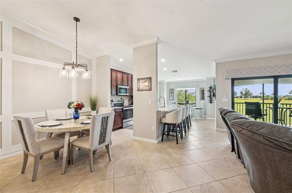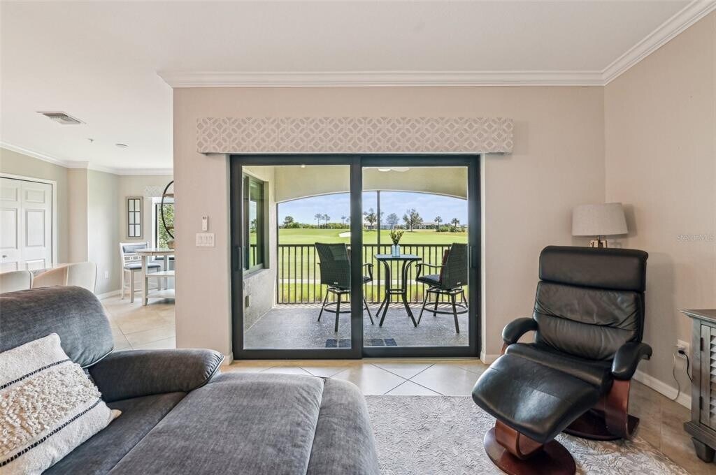 Enjoy resort-style living with breathtaking sunrise views overlooking Commander #9! Beautifully updated Diangelo second-floor Veranda in Lakewood National Golf Club,offered turnkey furnished and available January–March 2026. This 2BR/2BA + den condo features 1,336 sq. ft.,a detached 1-car garage,and two screened lanais—one overlooking the golf course and clubhouse,the other ideal for sunset lounging. Interior highlights include impact-rated windows/sliders,porcelain tile flooring,luxury plank flooring in bedrooms,custom electronic shades,two king beds,and a Murphy bed in the den. The kitchen features stainless-steel appliances,coastal granite counters,and a lowered counter-height island with open-concept flow. Bundled golf membership includes access to two Arnold Palmer–designed championship courses,resort pool,Tiki bar,clubhouse dining,spa,fitness center,tennis,pickleball,and bocce plus an active calendar of social events. Utilities included and electricity up to $100 a month. Guard gated and roaming security service. Convenient to shopping,dining,medical facilities,and beaches. Pet friendly,no smoking. Available January–March 2026 - 3-month minimum - Tenant responsible for HOA Transfer Fee of $642 - Tourist Tax - $300 Pet Fee - $300 Cleaning Fee - $2,000 Refundable Security Deposit MLS# A4669104