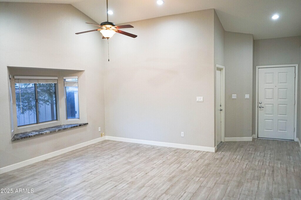 This charming single level,2 bed/2bath townhome features an open-concept kitchen and living space with tons of natural light,a garage and a great backyard! Just a few miles from all major freeways,and a short drive to Chandler Fashion Center for shopping,dining and more,this is a great,low-maintenance home. Come check it out! *Owner to have have backyard landscaping done before move-in*
