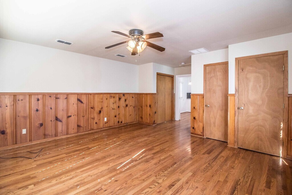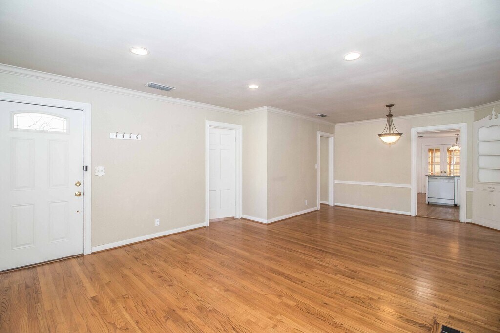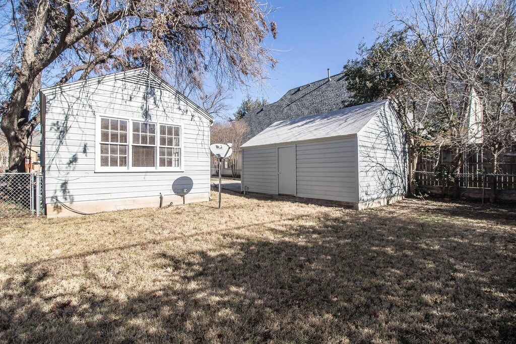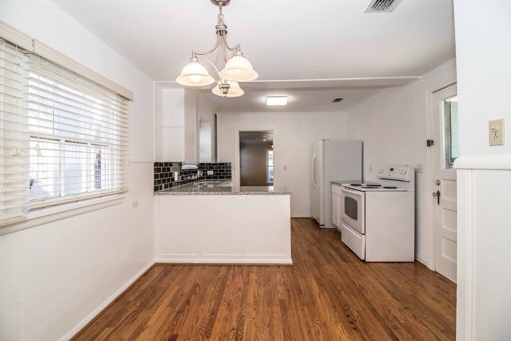 Charming home in a well-established neighborhood with beautiful, mature trees and inviting, tree-lined streets! This remodeled three-bedroom, two-bath home blends classic character with modern updates throughout. Fresh interior and exterior paint give the home a crisp, clean feel, while brand-new windows provide great natural light and energy efficiency. Inside, you’ll find hardwood floors throughout, complemented by decorative lighting and ceiling fans that add both style and comfort. The spacious living and dining areas offer a warm, welcoming atmosphere, and the dining room features built-in shelves—perfect for displaying décor, books, or additional storage. The kitchen comes fully equipped with all appliances, and a stackable washer and dryer are included for added convenience. Each bedroom offers comfortable space and versatility for guests, a home office, or growing households. Step outside to enjoy the fenced backyard—ideal for entertaining, relaxing, or giving pets room to play. The property also features a two-car detached garage, providing ample parking and additional storage space.