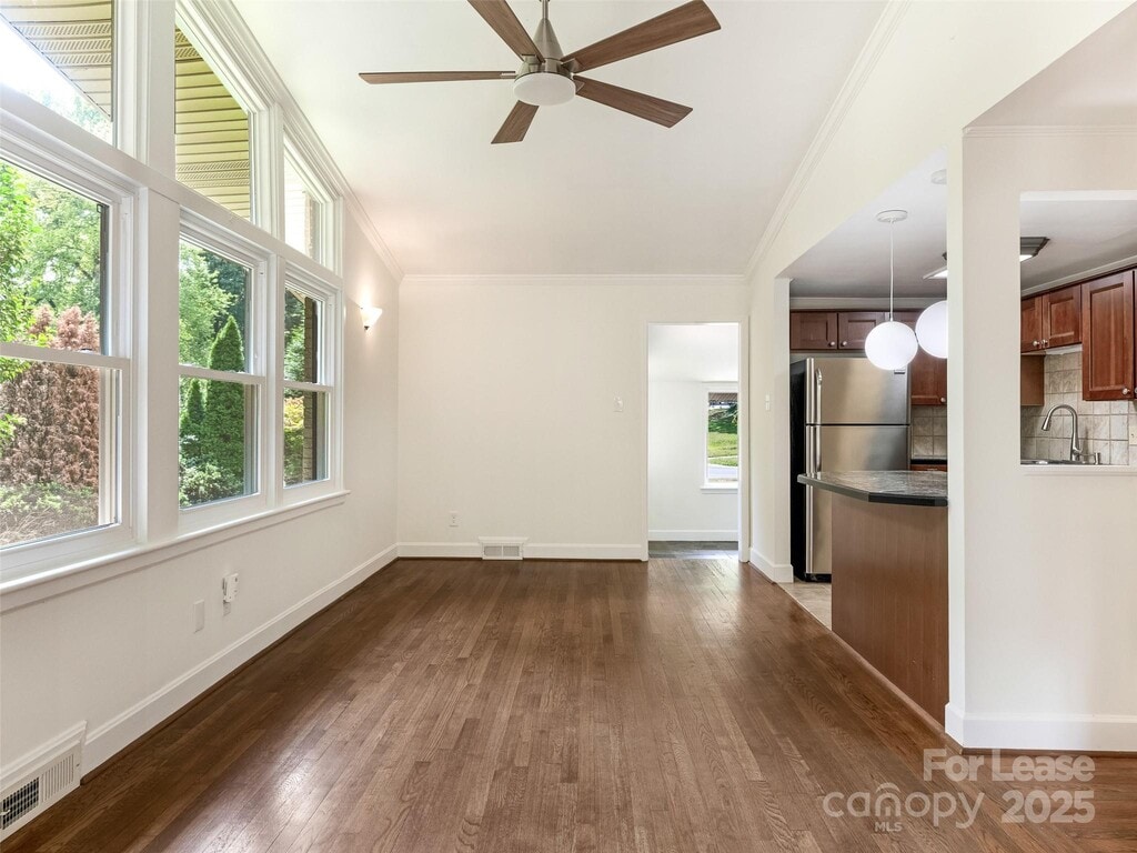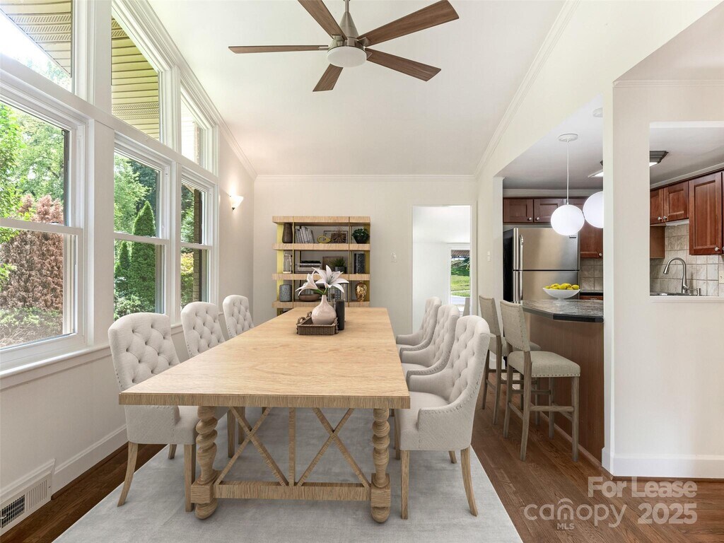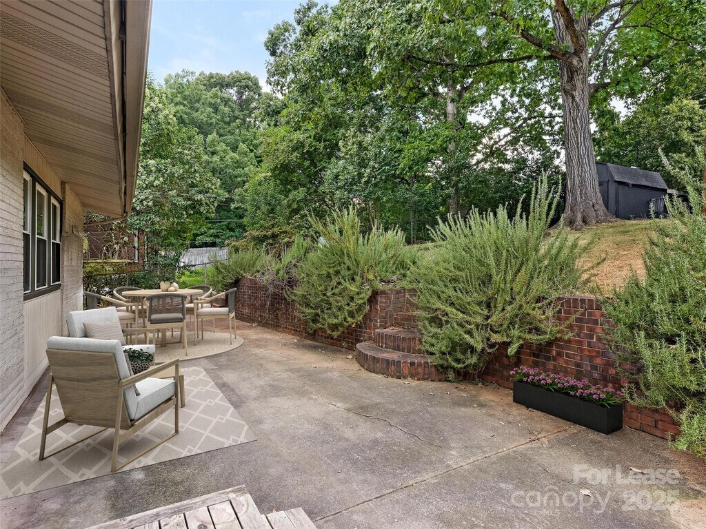 Welcome Home. Well-maintained and recently updated fantastic,very neat 3BR/2BA mid-century modern home with great curb appeal in sought after Collins Park neighborhood. Bright home with beautiful hardwood floors throughout. Nice size,well-appointed kitchen with solid surface countertops and hardwood cabinets. Dining/den area has expansive ceiling and new windows and access to expansive backyard. Great living area at front of home and laundry room with washer/dryer. Bedrooms are nice size and have gracious ceiling heights. Both bathrooms are well appointed. Residence gets tons of natural light. Good size circular driveway for off street parking and very large backyard with storage area and patio. Incredible location – close to Park Road Shopping Center,Southend,Dilworth,and Uptown.