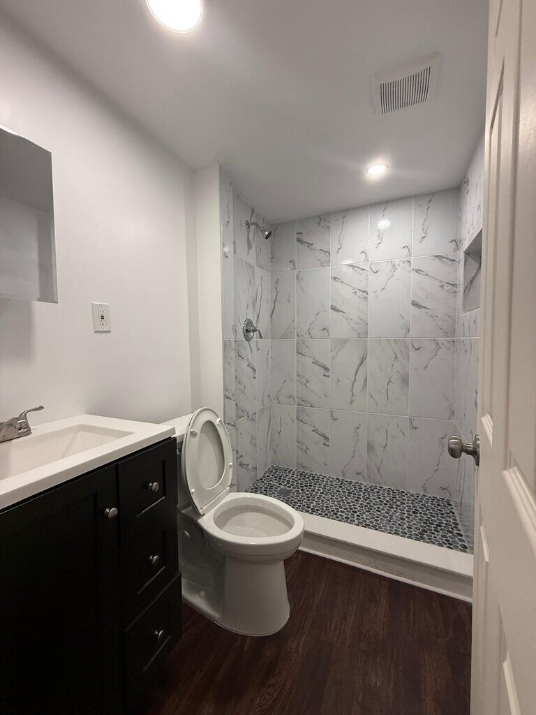 Welcome to this charming townhouse in the desirable Bergen-Lafayette section of Jersey City, located on Ocean Ave between Bayview Ave and Wilkinson Ave. This home offers 2 bedrooms, 2 additional office/dens, 2 full bath, and 1 half baths. Features include an updated kitchen with granite countertops, hardwood floors throughout, and fresh paint move-in ready! The layout allows for the option to install stackable laundry. Enjoy the convenience of 3 off-street parking spaces, a rare find in Jersey City. Perfectly situated just 8 blocks from the Light Rail Station, steps from Liberty State Park, and close to New Jersey City University, with easy access to local amenities and a quick commute to Lower Manhattan by bus or train.