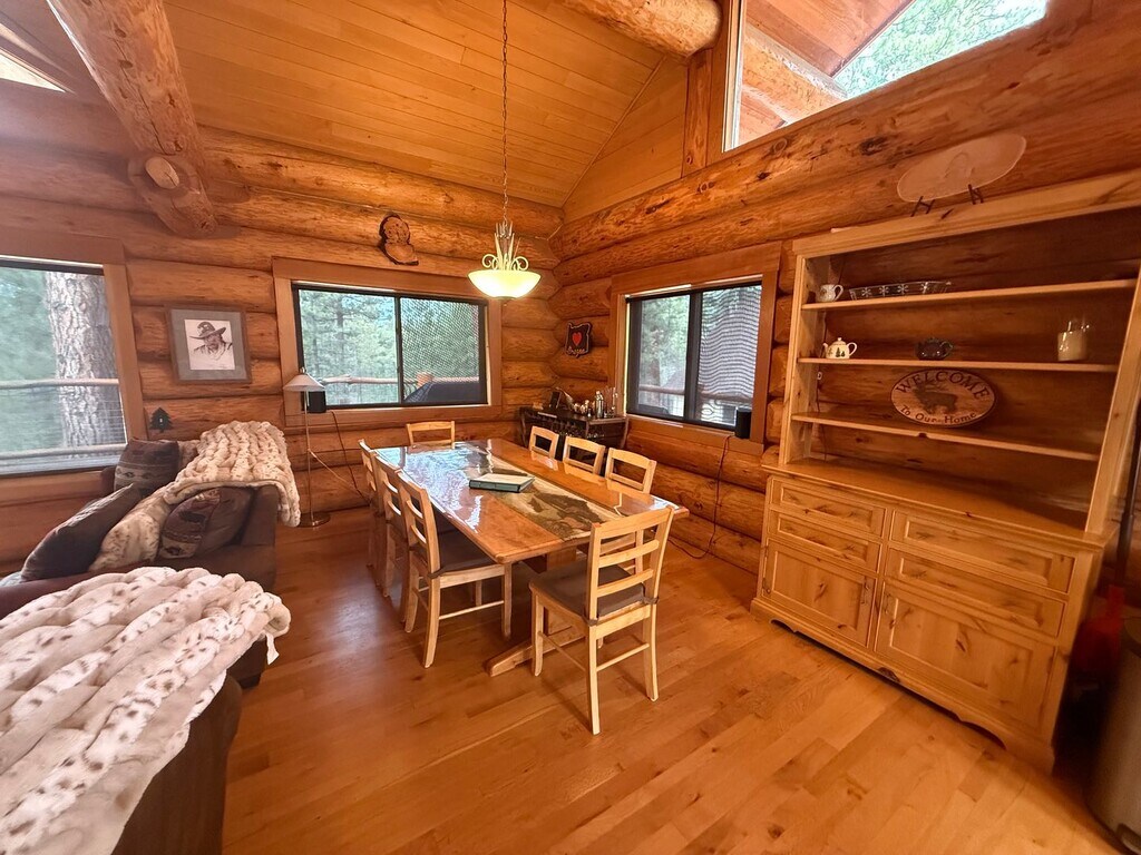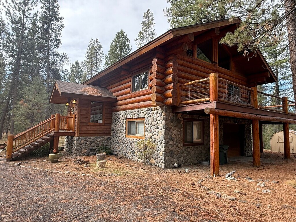 Long-Term Rental. Lovely furnished home with 1 car garage located just outside Sunriver. This cabin/home is located on 3 acres and will be the perfect place to relax for you and your family. The upstairs features the primary bedroom and an open living area with river rock wood fireplace along with dining and kitchen. The down stairs has the other two bedrooms along with a wood stove and access to the garage. With all the surrounding trees you will enjoy your privacy from the large exterior deck. **Linens and towels not included** No Pets allowed All of Village Properties at Sunriver properties are non-smoking/vaping Renter’s Liability Insurance required** Renter’s Personal Property Insurance optional Tenant pays all utilities All rental listings and availability are subject to change without notification All information is deemed reliable, but not guaranteed **Except when required or excluded by law