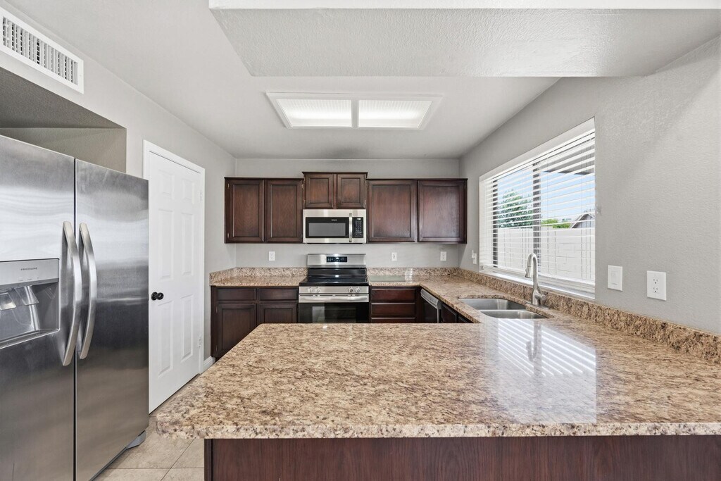 This amazing Mesa 3 bedroom,2 bath home in a NON-HOA community features an RV GATE so bring your toys! The Primary Bedroom is split & features a remodeled bathroom & TWO CLOSETS! The other 2 bedrooms share an updated bathroom. You'll love the large yard & covered patio. 2025 Upgrades include: Exterior paint + block wall,garage door,Updated RV gate,Exterior light fixtures + doorbell,outlets + rocker switches,interior blinds,recessed lighting in living room,stainless steel appliances,French doors to primary bedroom,Electrical upgrade in primary (separate panel for added appliances),some updated interior light fixtures,faucets in Kitchen & Bathrooms,closet doors + interior doors,& Refreshed landscaping. Tour Today! MLS ID 7019509