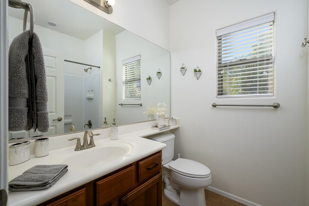 Welcome to Casa Stetson, a newly furnished private single-family home located in a quiet neighborhood of north Phoenix, just off highway 17. This one-level home, with no stairs, offers a spacious great room featuring a large couch and TV with cable channels, seamlessly connecting to a fully equipped kitchen with a breakfast bar and dining area. A sliding door leads to outdoor dining with views of the sparkling pool and hot tub. Casa Stetson provides a comfortable living space with a huge couch and TV in the great room, opening up to a fully equipped kitchen and dining area. The outdoor area features a pool, hot tub, four chaise lounge chairs for sunbathing, a built-in BBQ, and an outdoor bar, perfect for enjoying a cocktail while cooking. The pool can be heated for an additional charge of $350 per week or $1250 per month during the winter. A dog is allowed with approval, and a non-refundable pet fee will be added to your booking. There is a $400 per month electric cap during the summer months from June through September, with guests liable for any overages. Situated in a quiet neighborhood of north Phoenix, Casa Stetson offers easy access to highway 17, making it convenient to explore the surrounding area. Enjoy the tranquility of the neighborhood while being just a short drive away from local attractions and amenities. Guests are liable for any damages caused to the property. The heated spa can be used at your leisure. The property includes a laundry room with a full-size washer and dryer, a fully gated yard, and parking available in a 2-car garage and driveway. A desk is available in the living room for sending necessary work emails, providing a convenient space for remote work. [SI]