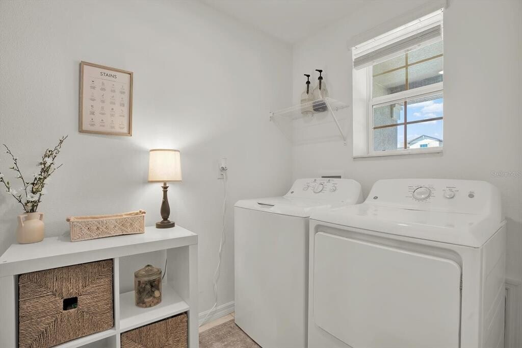Welcome to this stunning turn-key 2023 single-story home in the desirable Berry Bay community! This beautifully maintained residence showcases modern interior design touches and an open-concept layout that seamlessly connects the kitchen,dining,and family rooms—perfect for entertaining and everyday living. The kitchen features quartz countertops,a tile backsplash,and designer lighting fixtures. The private owner’s suite offers a relaxing retreat with a walk-in closet and ensuite bath,while two additional bedrooms provide space for family or guests. Vinyl privacy fence and backyard with kid-safe play area,rubber mulch,and decorative rock garden. ADT security system with Google Home cameras included! Enjoy resort-style amenities—pool,clubhouse,pickleball and basketball courts,dog park,playground,and walking trails. Convenient to US-301,I-75,Tampa,St. Pete,and Sarasota. MLS# TB8454819