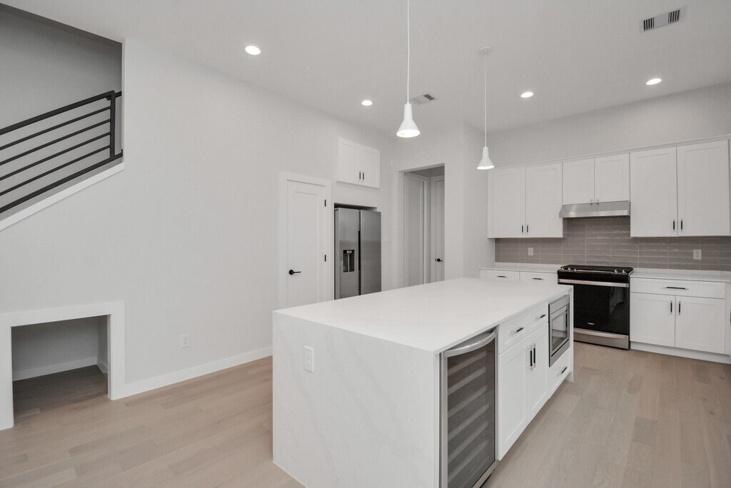 Exquisite home by ZENITH Urban Development located in Cottage Grove. This mesmerizing and luxuriously modern home includes 3BR/3.5BA with an amazing open floor plan. The neutral paint combined with the abundance of natural light makes the interior features of the house look spectacular. Entertainment-ready,the gourmet kitchen has modern Quartz countertops,Whirlpool Stainless Steel appliances + Vent Hood,and a walk-in pantry! The house includes a private driveway,a covered patio,and an oversized turfed backyard perfect for entertaining guests! The primary bedroom includes a COVERED BALCONY with BIG WINDOWS,TWO walk-in closets,and an ensuite owner’s bathroom with a soaking tub and upgraded double vanity. Secondary bedrooms on the 2nd floor WITH private bathrooms. Located minutes from Greater Heights with easy access to major freeways I10 and 610W. WASHER,DRYER & REFRIGERATOR ARE INCLUDED! MLS# 9698144
