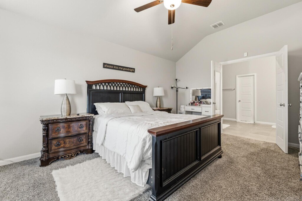 Welcome to this beautifully designed 4-bedroom, 3-bathroom home offering 2,025 square feet of thoughtfully crafted living space. A versatile flex room offers the perfect opportunity to create a formal dining area or a home office tailored to your lifestyle needs. The heart of the home showcases an open-concept layout where the kitchen, dining, and family room seamlessly come together, highlighted by an expansive center island and abundant natural light throughout. Step outside to enjoy the covered patio and extended deck, ideal for entertaining or relaxing, with plenty of space to add outdoor furnishings and personal touches. The owner's suite serves as a private retreat, complete with a bay window extension, an en-suite bathroom, and a spacious walk-in closet designed for convenience and ease. The garage is a standout feature, complete with durable epoxy flooring and a dedicated split system for year-round comfort. Comes with fridge, water softener, and solar panels!